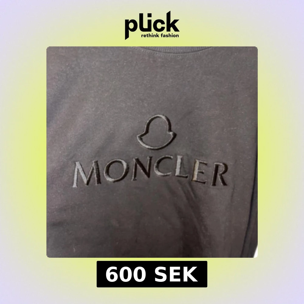 Säljer en stilren svart sweatshirt från Moncler med broderad logotyp på bröstet och ett märke på ärmen. Tröjan har långa ärmar och en klassisk rund halsringning. Perfekt för en avslappnad och trendig look. (FRAKTAS SAMMA DAG)