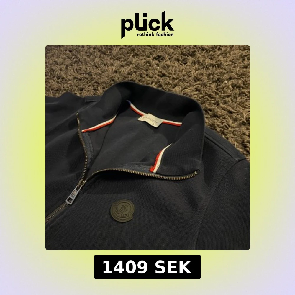 Snygg marinblå tröja från Moncler med dragkedja och långärmad design. Tröjan har en diskret logga på bröstet och röd-vit detalj vid kragen. Perfekt för en stilren look.