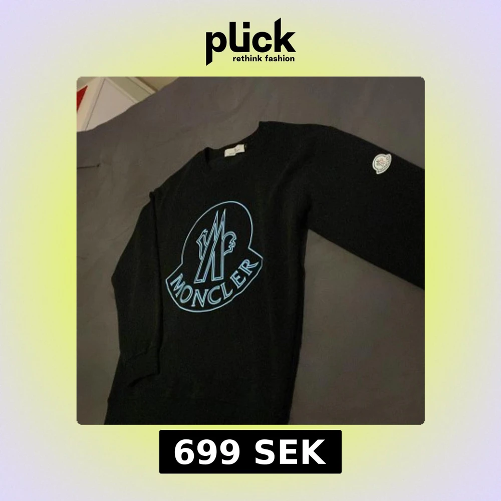 Svart sweatshirt från Moncler med stort blått logotryck på bröstet och klassisk Moncler-patch på ärmen. Tröjan har rund hals, ribbade muddar och är långärmad. Perfekt för dig som gillar stilrena designer med tydlig branding.