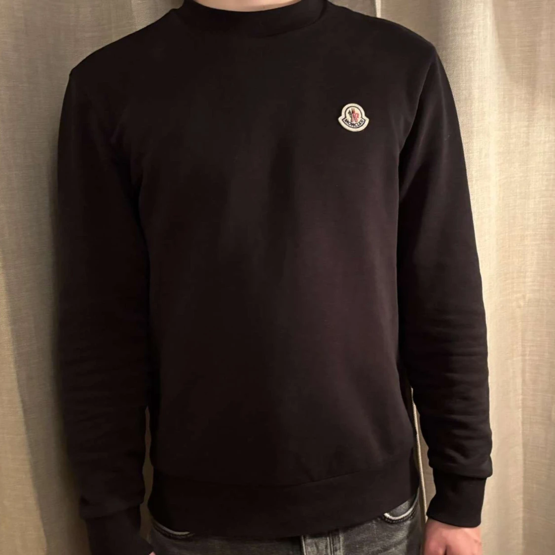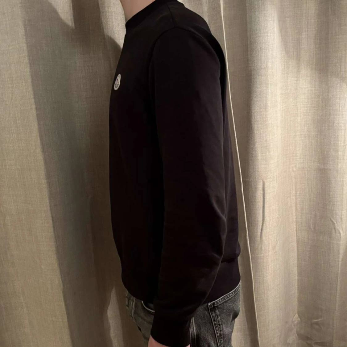 Moncler sweatshirt som är varsamt använd. Inga skador eller defekter. Cond: 10/10 Jag på bilden är 184cm och 78kg. Passar en storlek M men även en ”liten large” Hör av dig för fler funderingar!