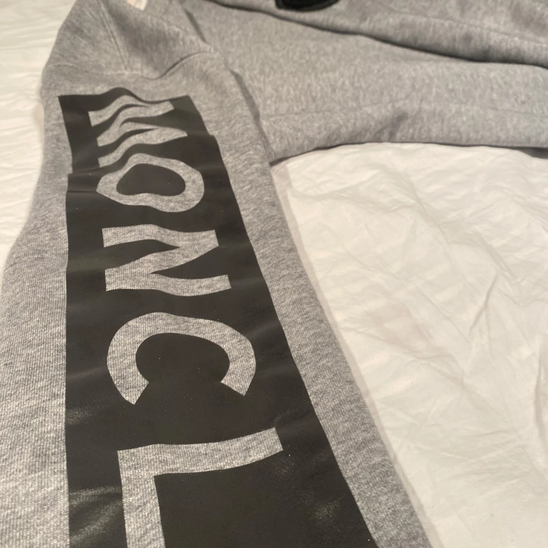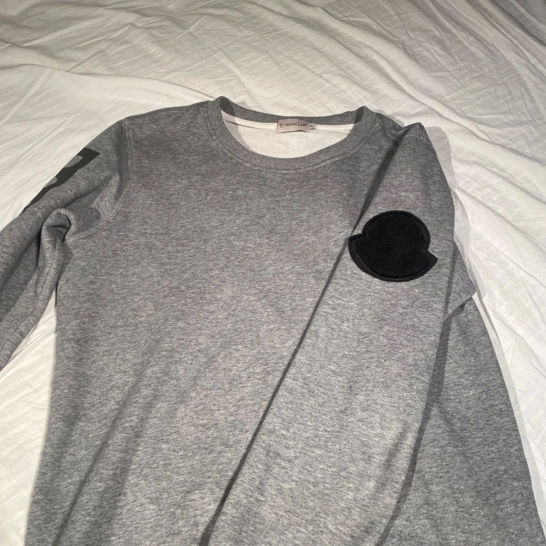 Säljer denna moncler tröja i storlek L men sitter som M, skicket är helt utmärkt skulle säga nära till nyskick. Om man kollar noga vid qr koden ser man att det suttit en tag där. Har du några frågor är det bara att höra av sig!😁😁😁