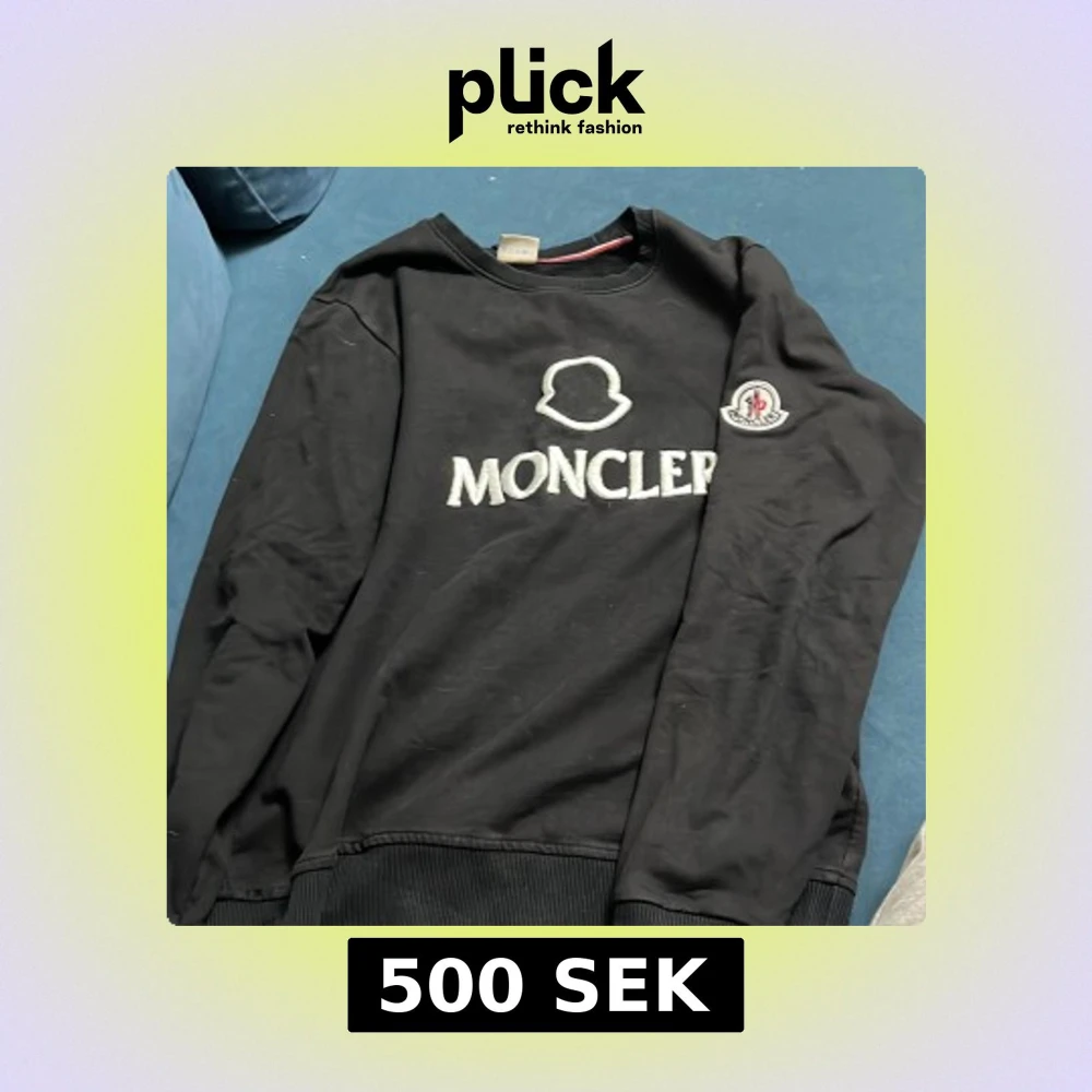 Snygg svart sweatshirt från Moncler med deras ikoniska logga broderad på bröstet och en patch på ärmen. Tröjan har en rund halsringning och ribbade muddar vid ärmslut och nederkant. Perfekt för en stilren look.