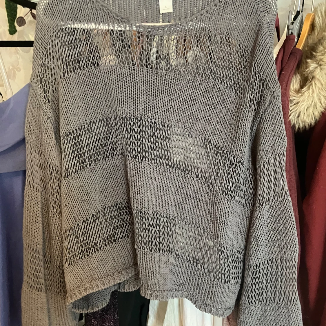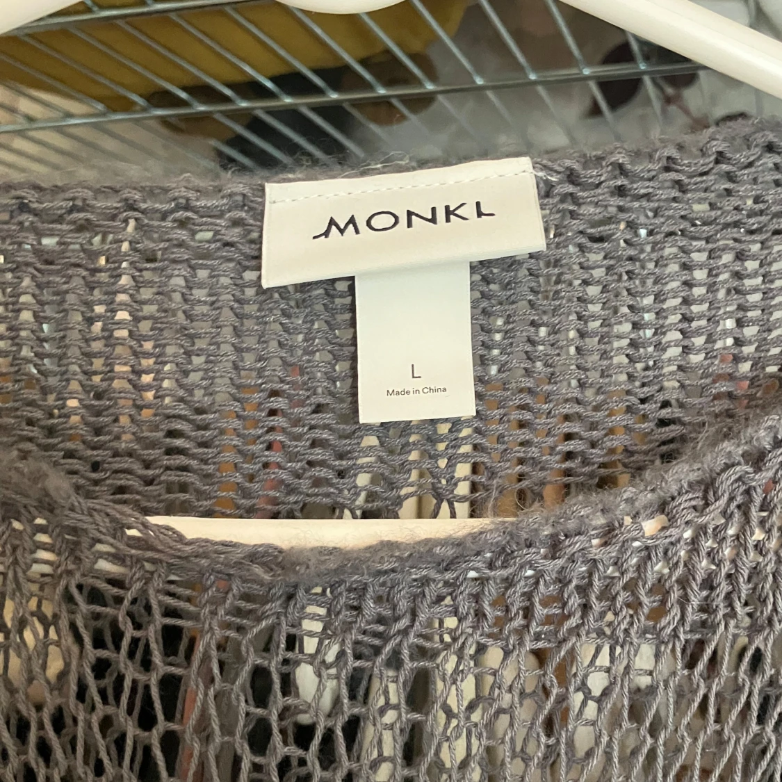 Säljer en grå, grovstickad meshtröja från Monki i storlek L. Tröjan är långärmad och är oversized! Aldrig använd!