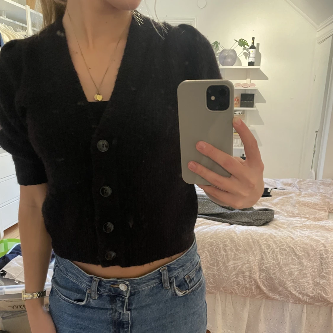 Säljer en svart stickad kortärmad kofta från Monki. Köpt för ca 3 år sen men är aldrig använd. Koftan är i storlek xs.