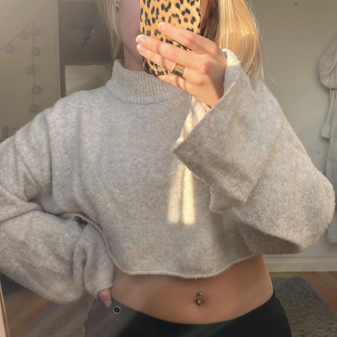 Beige stickad tröja med vida ärmar från Monki som är så sjukt skön 😍