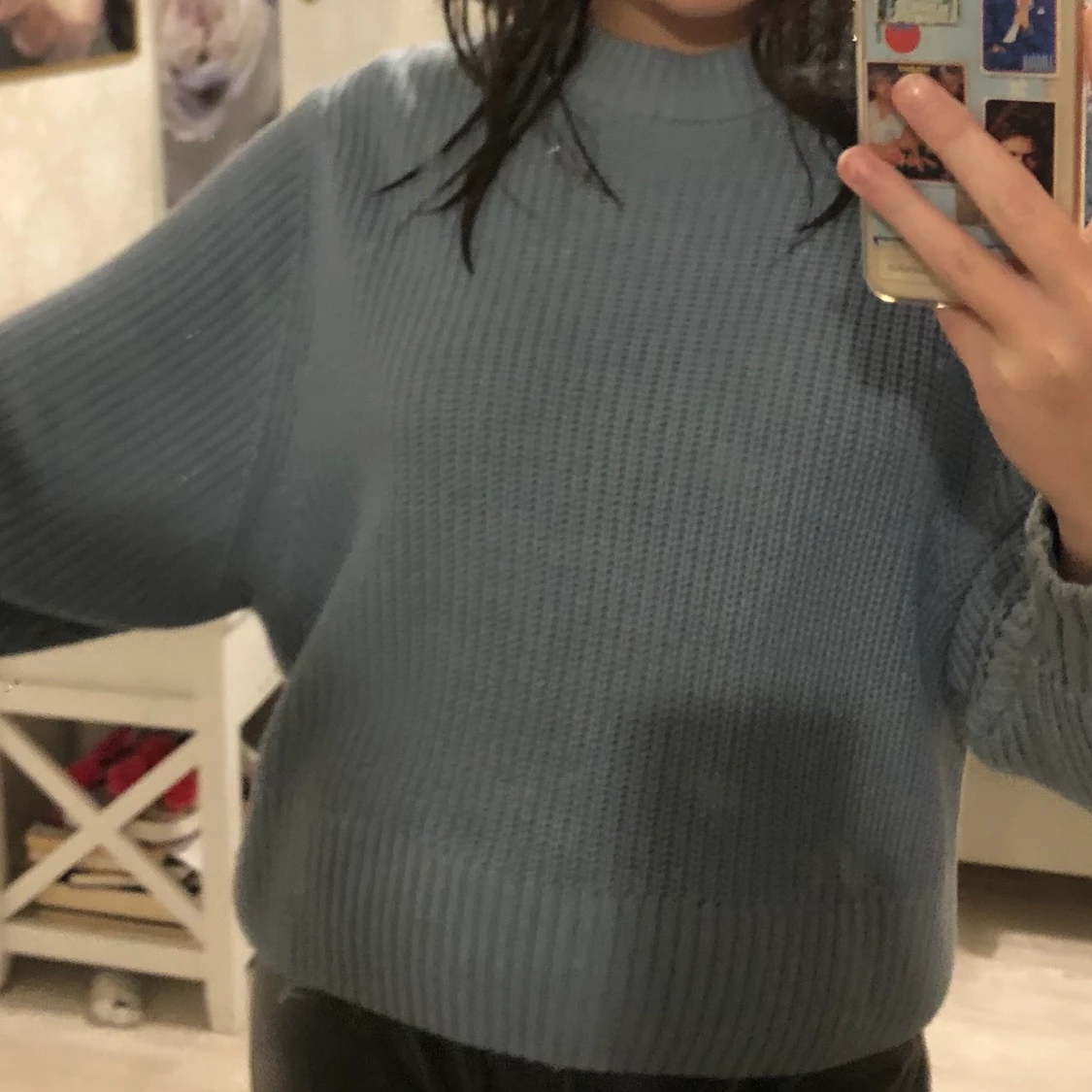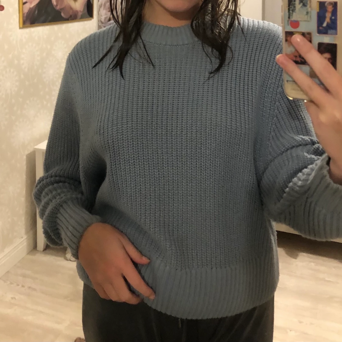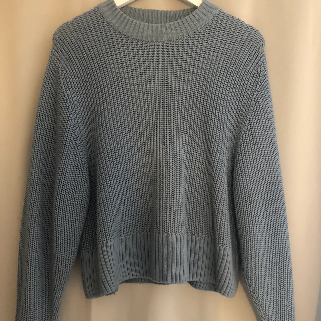 Fin blå stickad tröja i storlek S från Monki, köparen står för frakten💗