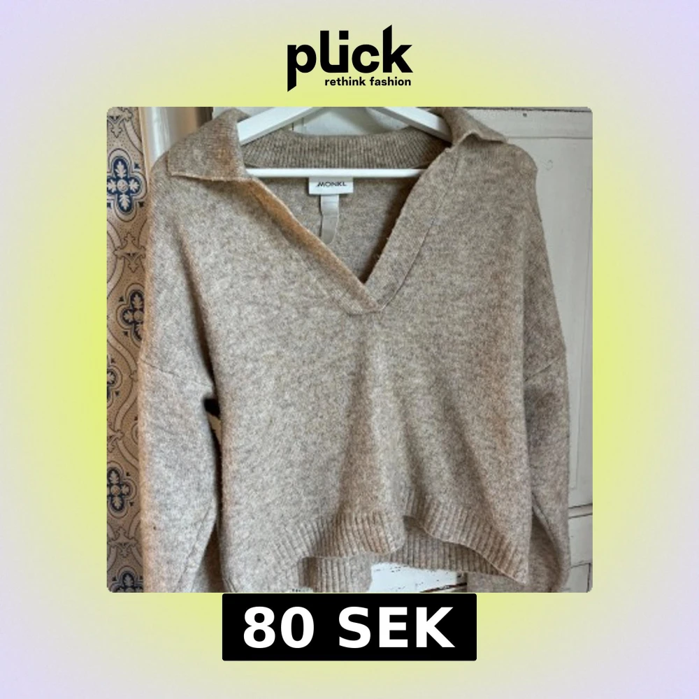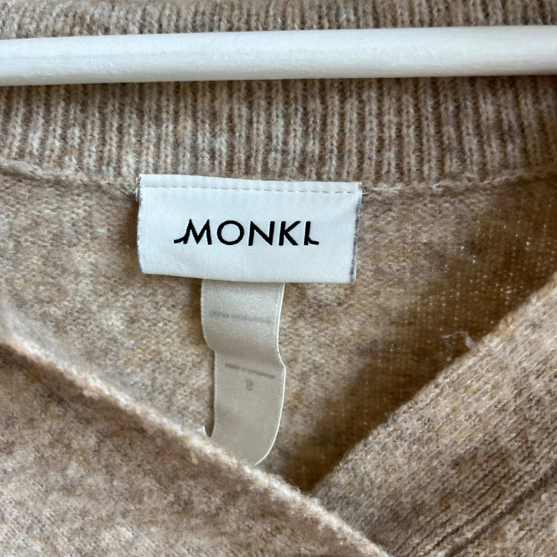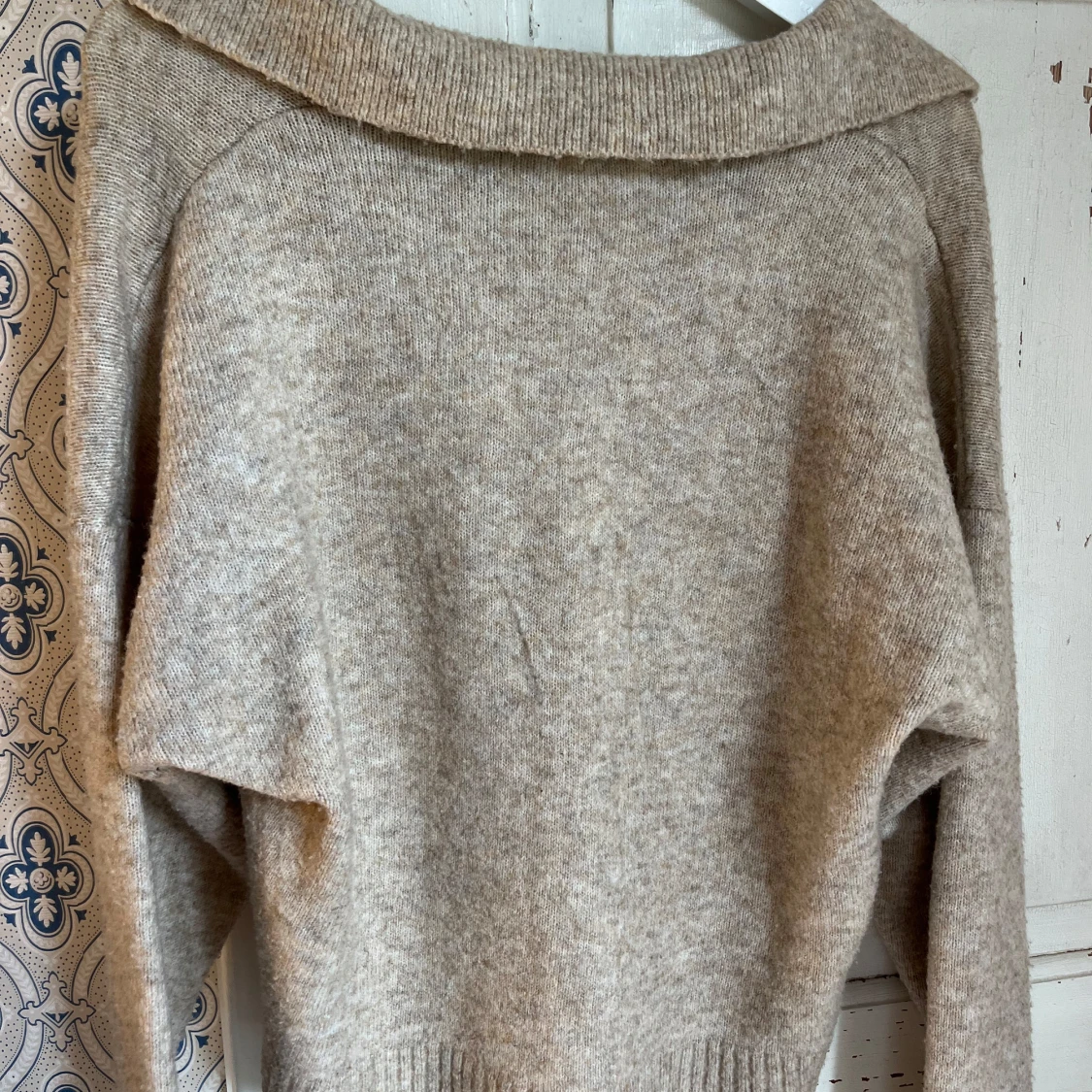 Beige stickad tröja från monki. Halsen är v-ringad med en liten krage. Använd ett fåtal gånger.