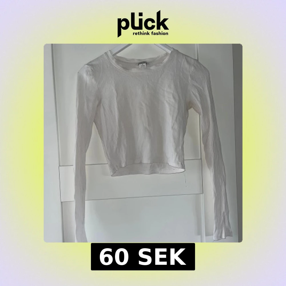 Säljer en stilren vit ribbad croppad topp från Monki. Toppen har långa ärmar och en rund halsringning, perfekt för lager-på-lager eller som den är. Passar till många olika outfits!