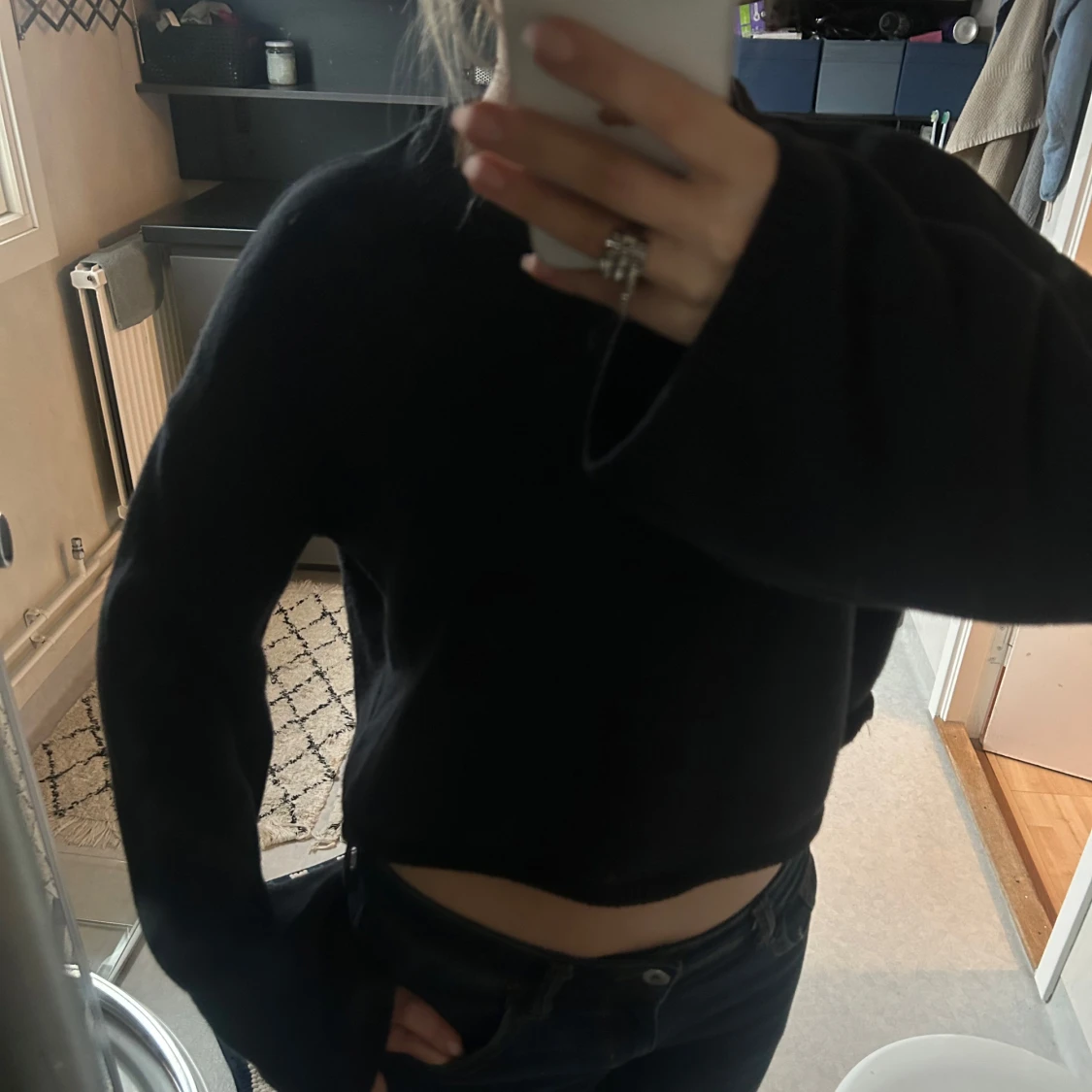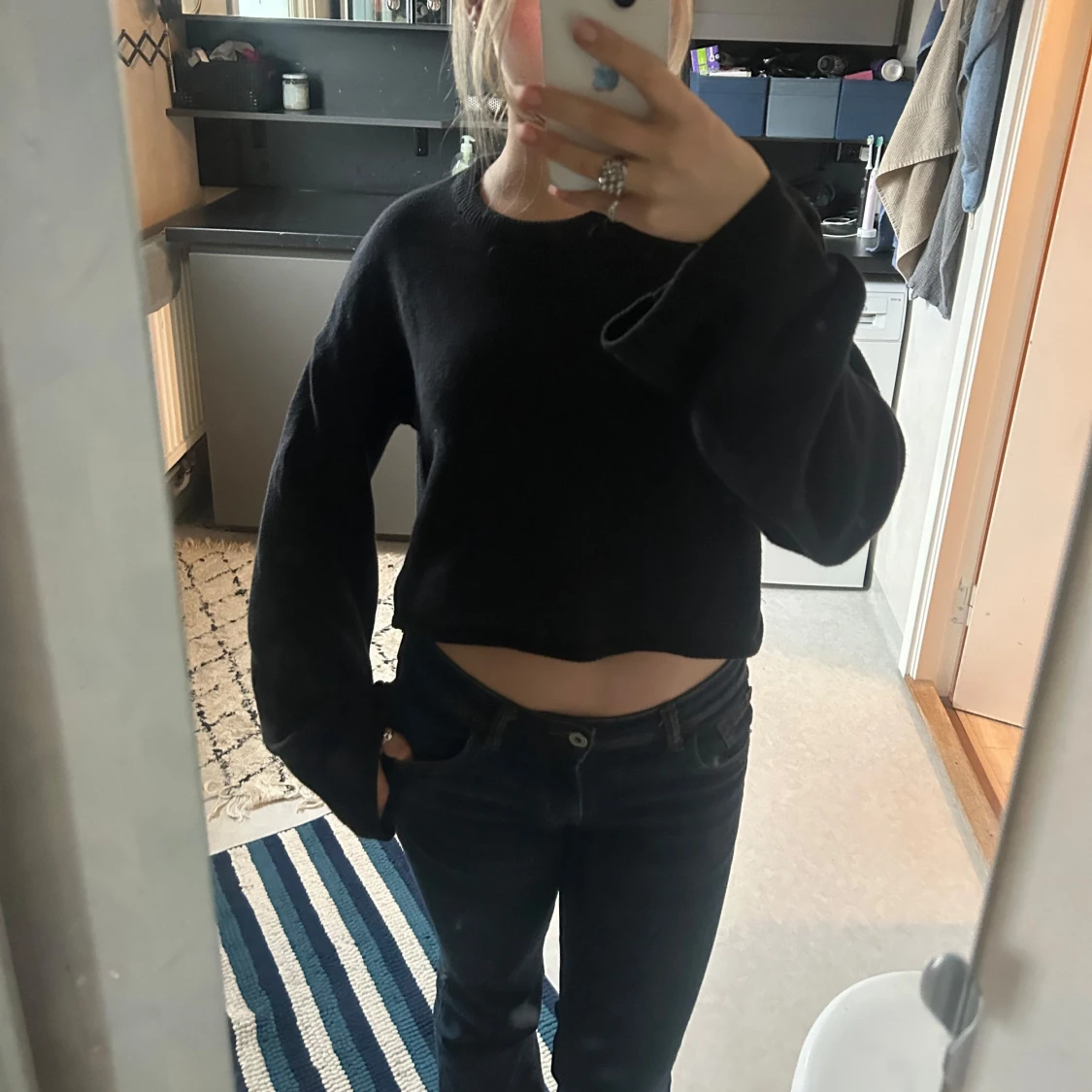Säljer denna croppade tröjan med utsvängda armar från Monki! Tröjan är i storlek S, och använd några gånger men är fortfarande i väldigt bra skick💕