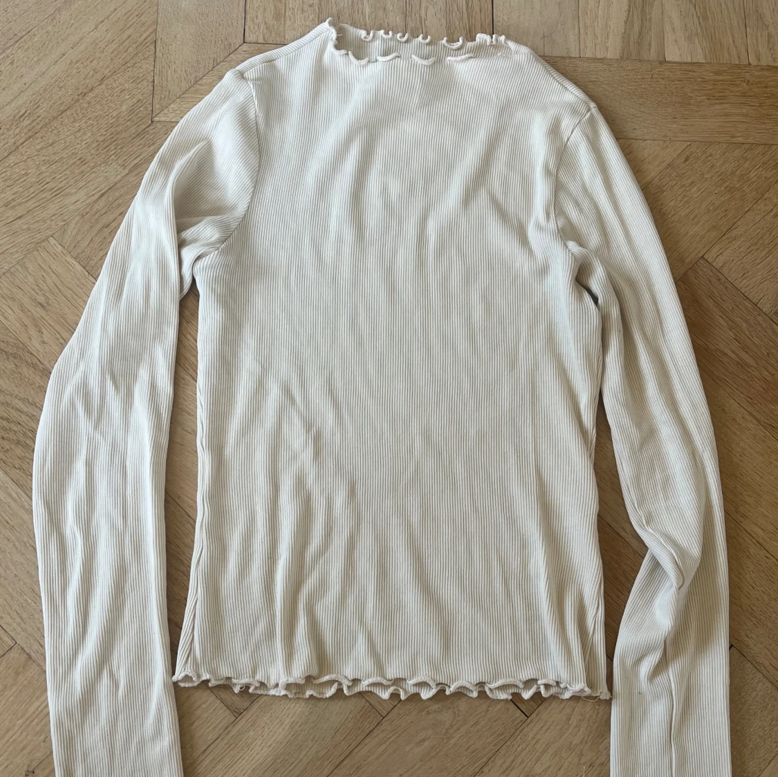 Åtsittande ribbad tröja. Med detaljer🤍✨väldigt mjuk och bekväm i fint skick!
