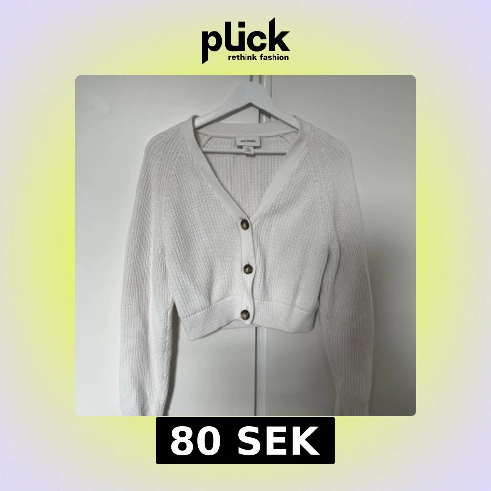 Fin vit stickad kofta från Monki i croppad modell. Koftan har v-ringning, långa ärmar och snygga knappar framtill. Perfekt att slänga över en topp för en chill och stilren look.
