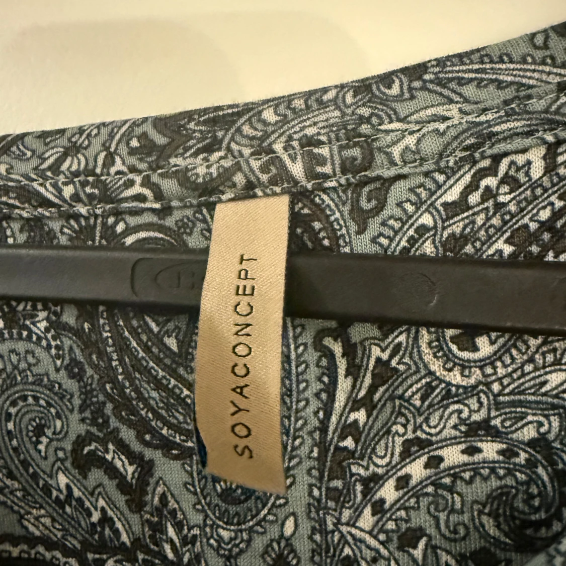 Snygg långärmad topp från Soyaconcept med ett detaljerat paisleymönster i grå och svarta nyanser. Perfekt för en stilren look. Toppen har en v-ringad hals och är tillverkad i ett mjukt material.