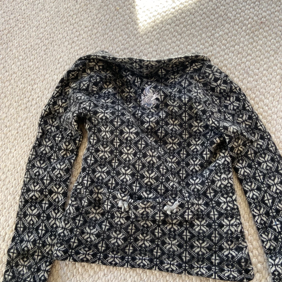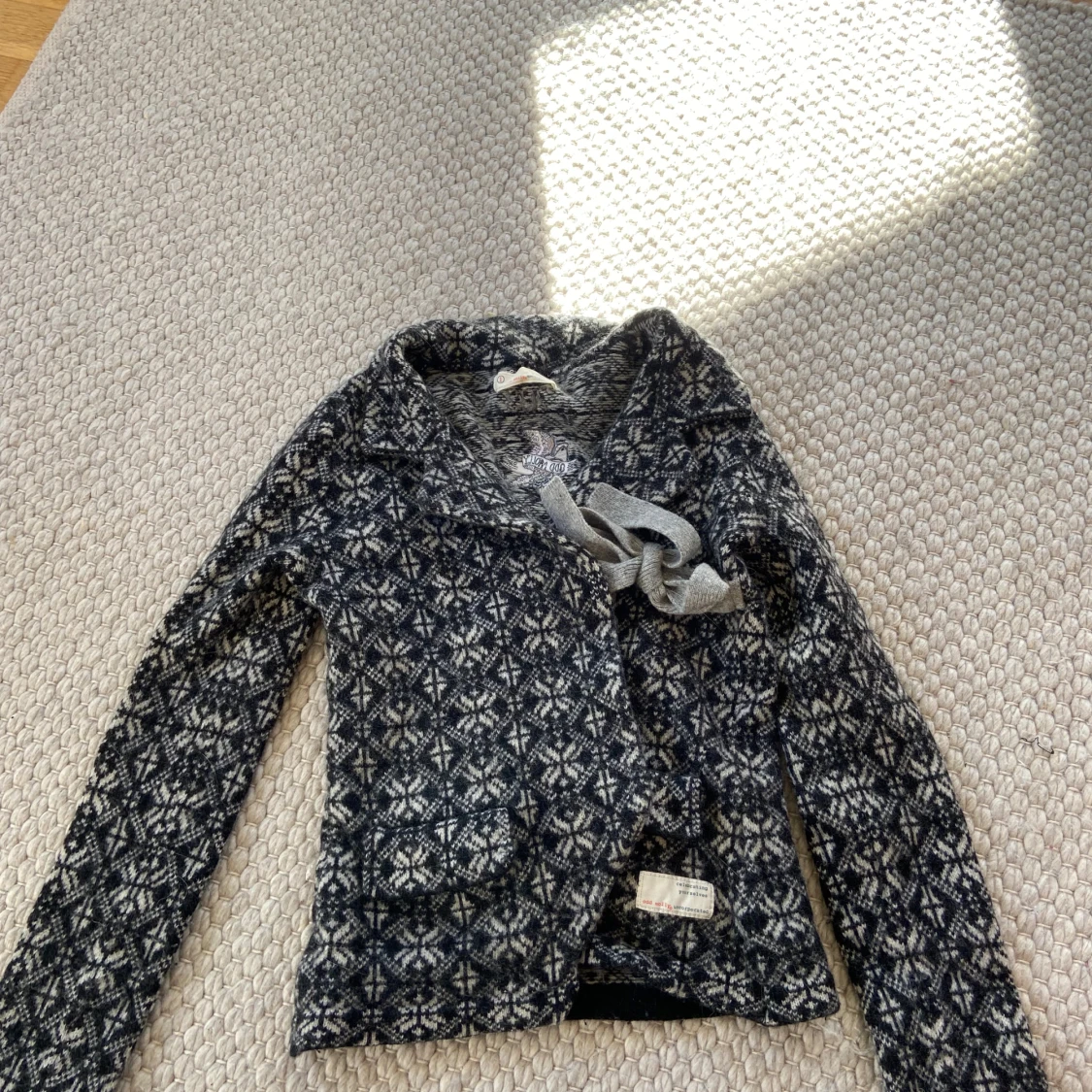 Super fin stickad Odd Molly kofta med knyte på sidan. Den är tyvärr tvättad på fel sätt och då krympt, skulle säga att den är mer en 0a.