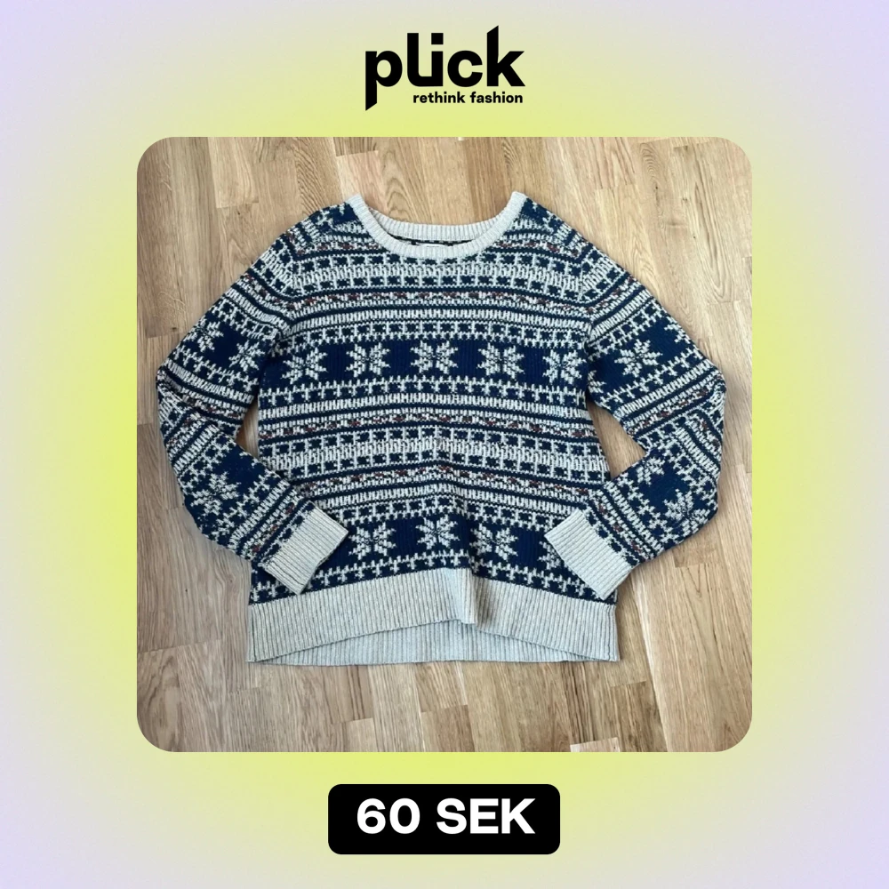 Säljer en supermysig stickad tröja med ett klassiskt vintermönster i blått och vitt. Perfekt för kalla dagar med långa ärmar och ribbade muddar. Tröjan är i bra skick och passar perfekt för både höst och vinter. Skön och stilren för alla tillfällen!