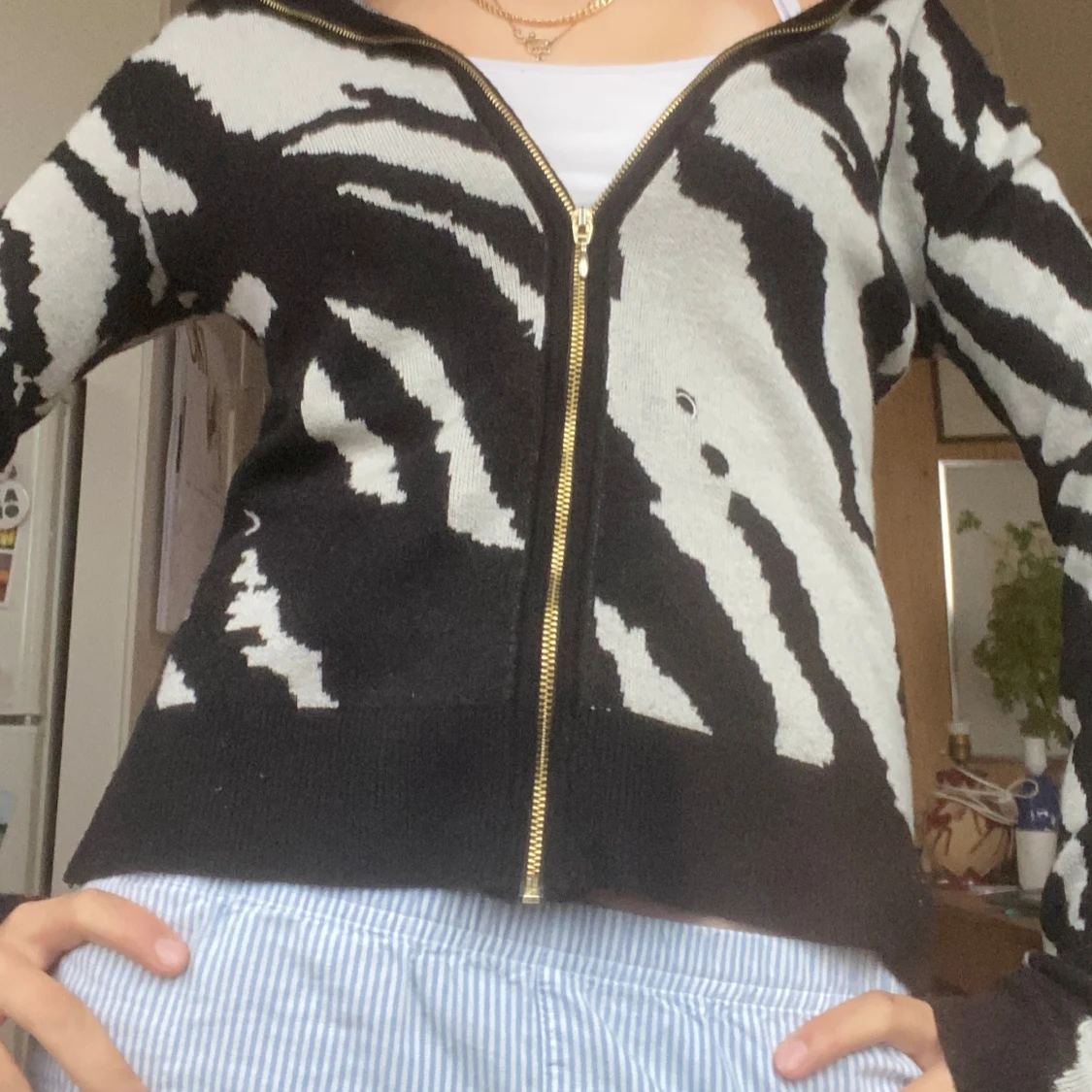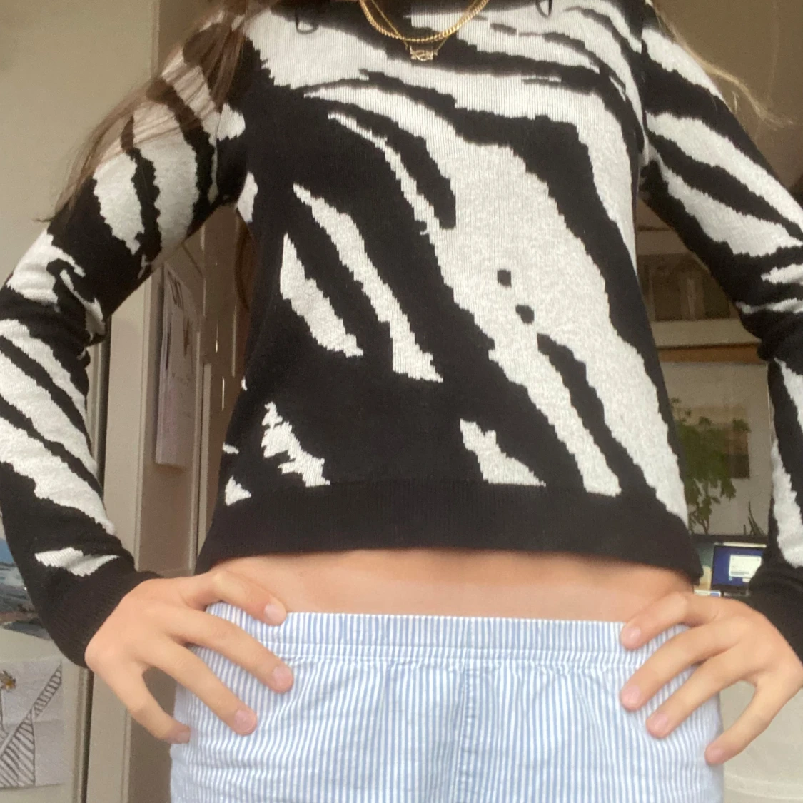 Säljer denna snygga mönstrade ”stickade” tröjan som går att använda åt båda hållen! Supersnygg men får inte riktigt användning av den🩷 har köpt second hand så vet inte vart den är ifrån. Pris går att diskutera!