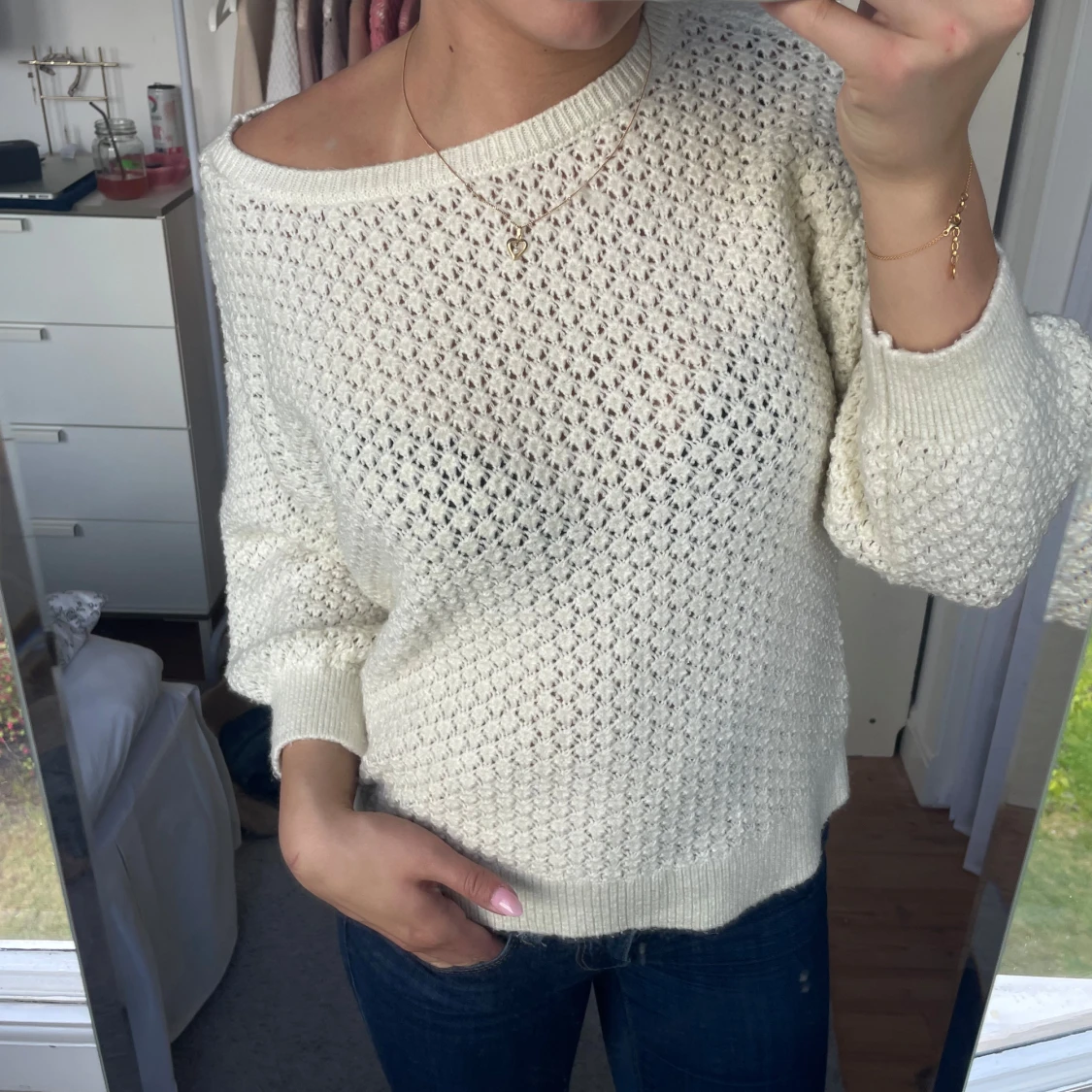 Stickad Trekvartsärmad tröja i stickat material, jättefint skick!