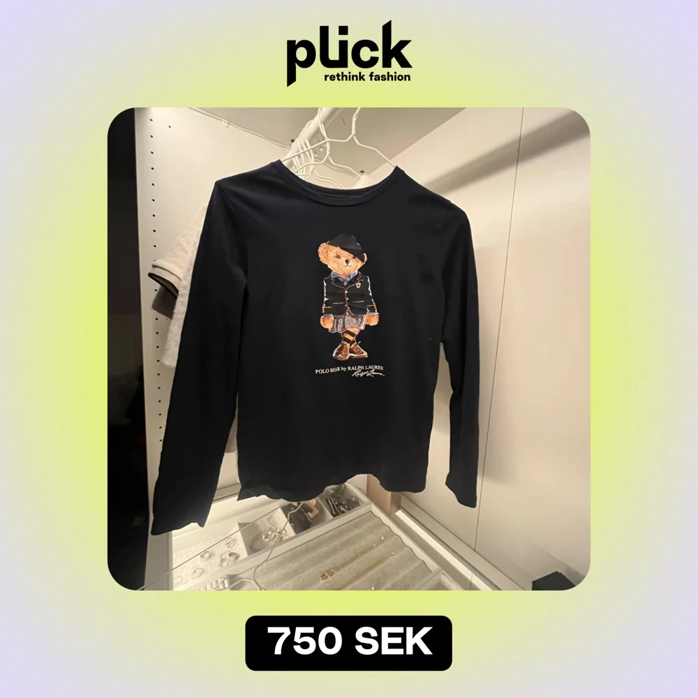 Säljer en snygg mörkblå långärmad tröja från Ralph Lauren med en cool Polo Bear-design på framsidan. Perfekt för höst och vinter, och den är i mycket bra skick. Tröjan är gjord av mjukt material och har en normal passform. Perfekt för att ge din outfit en stilfull touch! 🐻✨