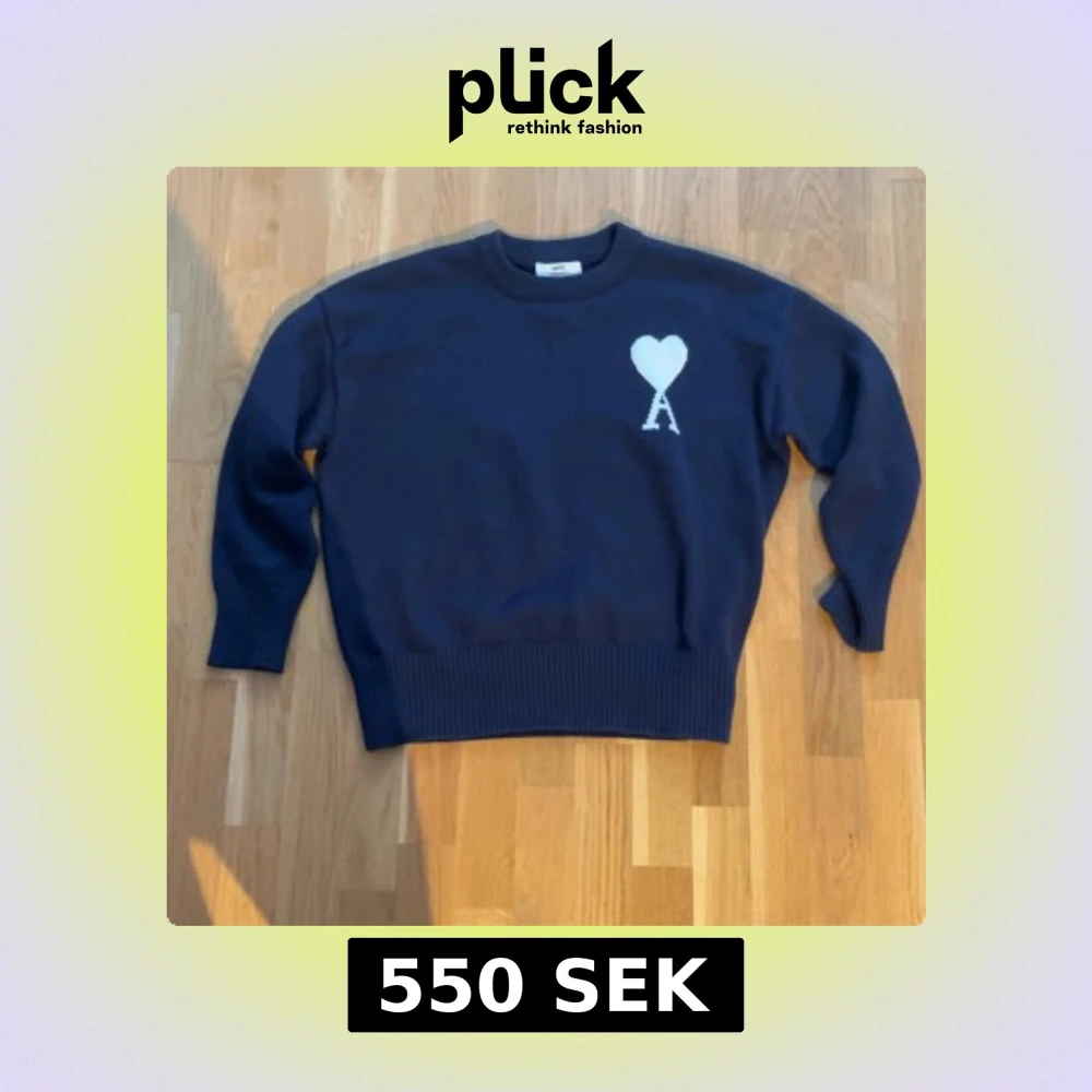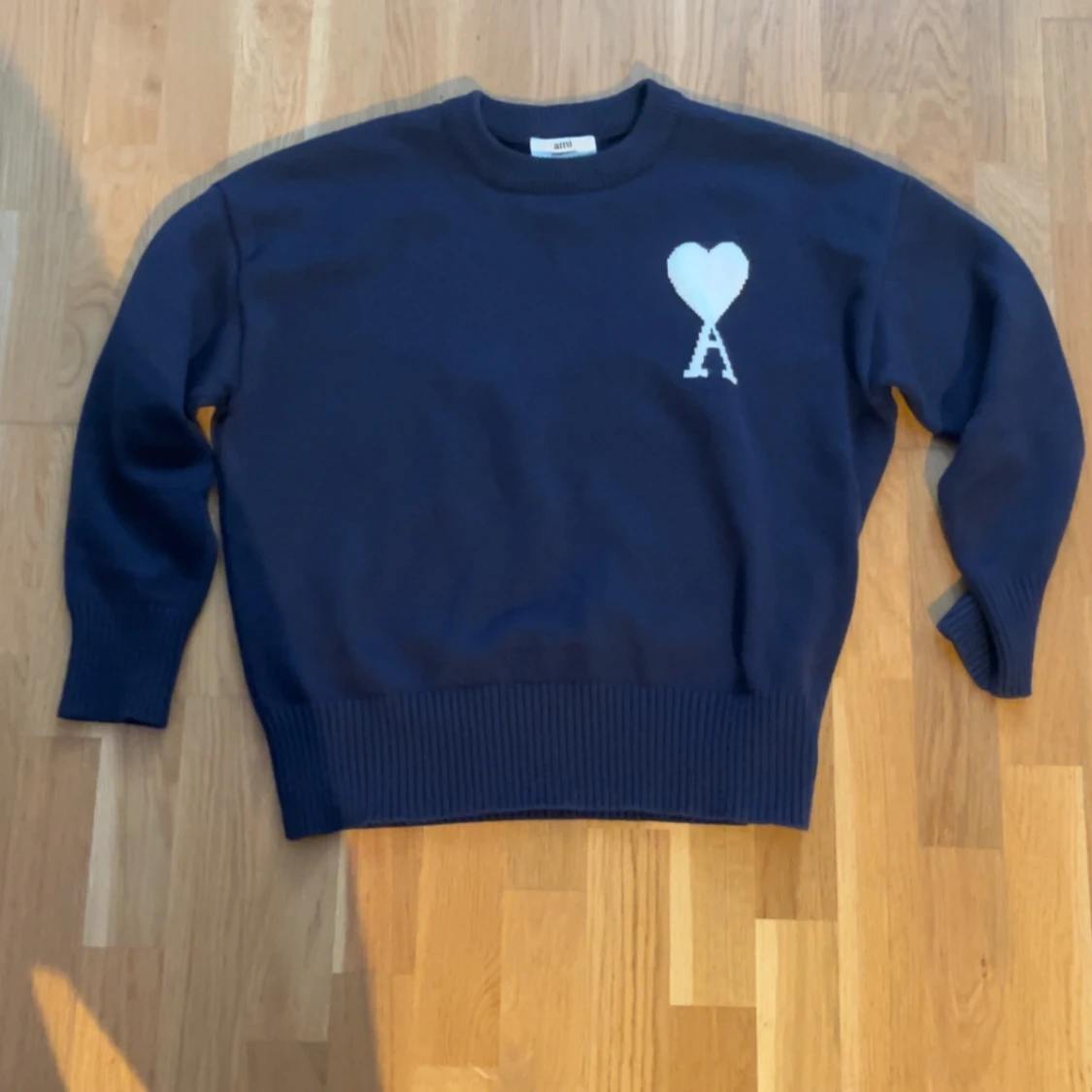 Mörkblå stickad tröja från Ami Paris. Storlek M , inga defekter