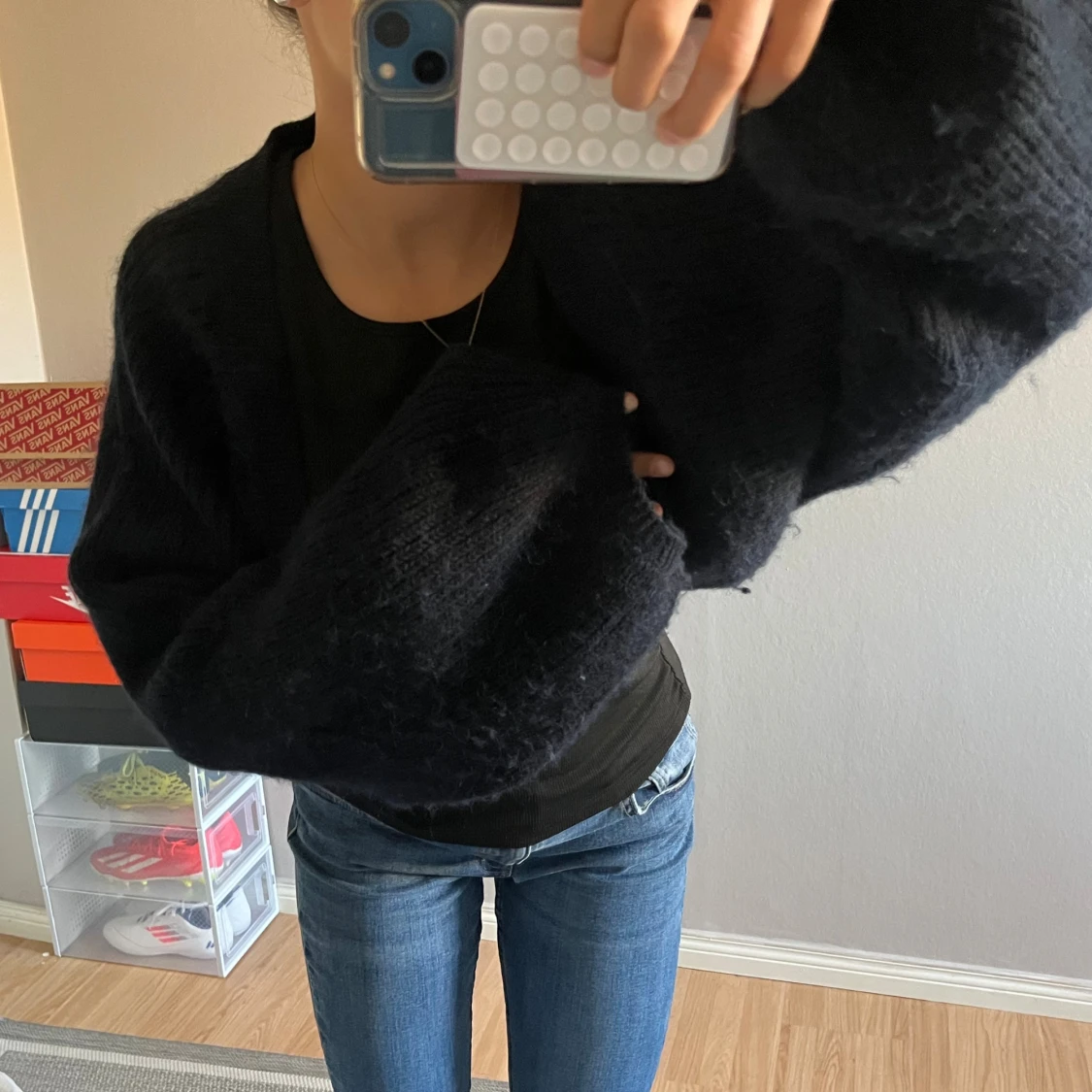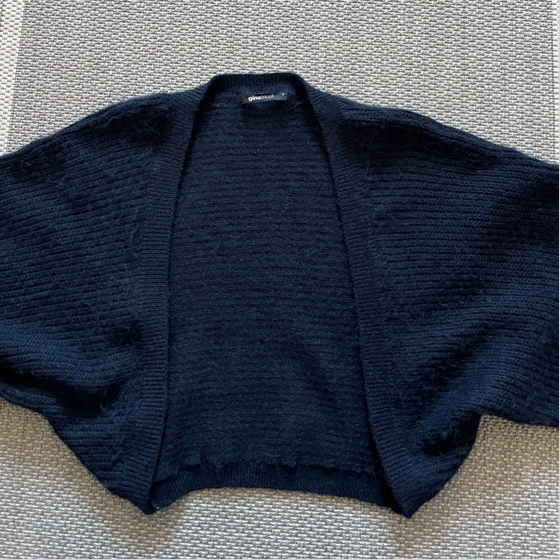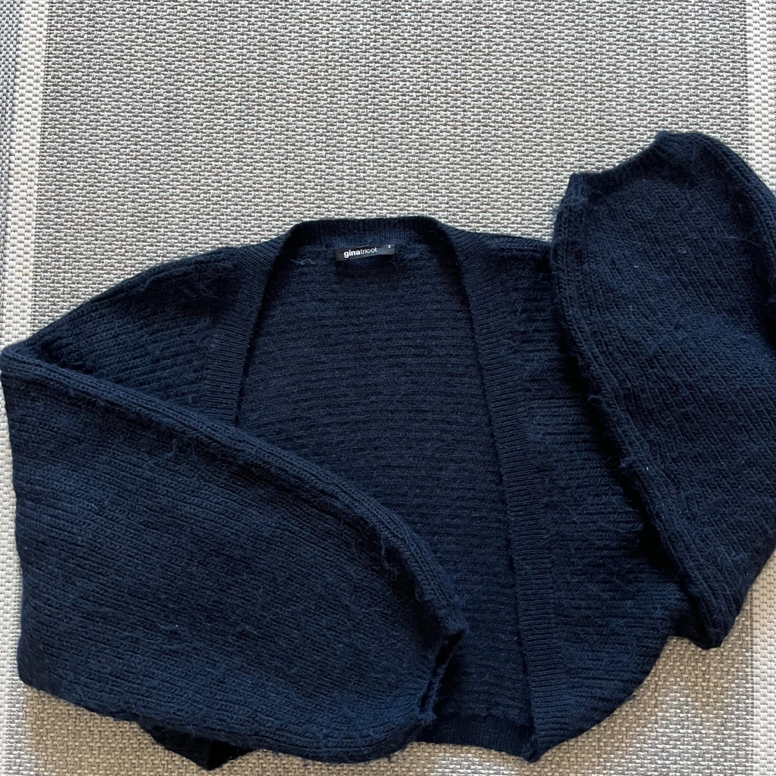 Mysig mörkblå bolero från Gina Tricot med fina vida ärmar. Storlek S. Kommer inte till användning, nyskick! Rensar garderoben, kolla in mina andra kläder så får ni rabatt ju fler plagg ni köper!🥰