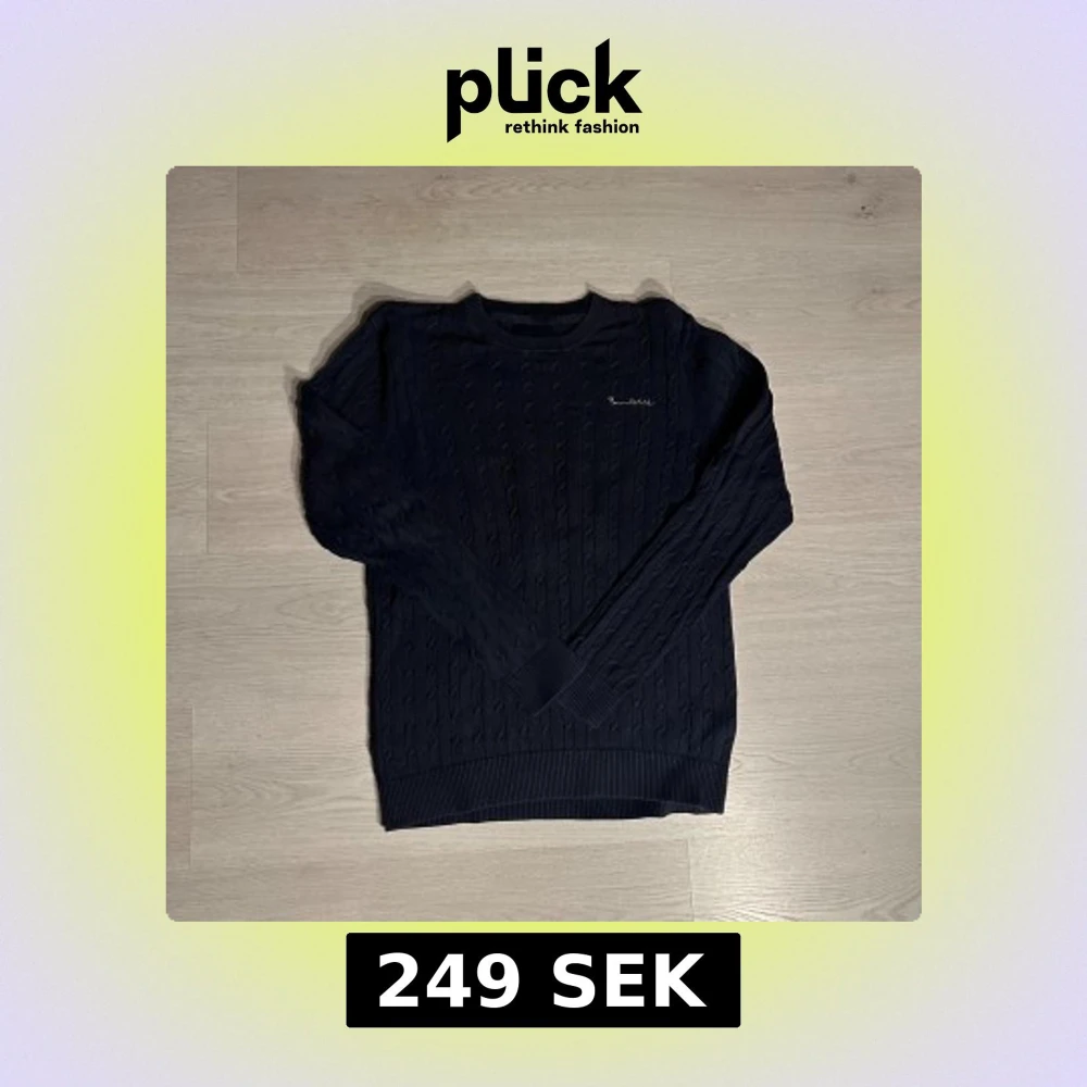 Snygg mörkblå kabelstickad tröja från Bondelid med diskret broderad logga på bröstet. Tröjan har rund hals, ribbade muddar och långärmad passform. Perfekt för dig som gillar klassisk stil med en modern touch.