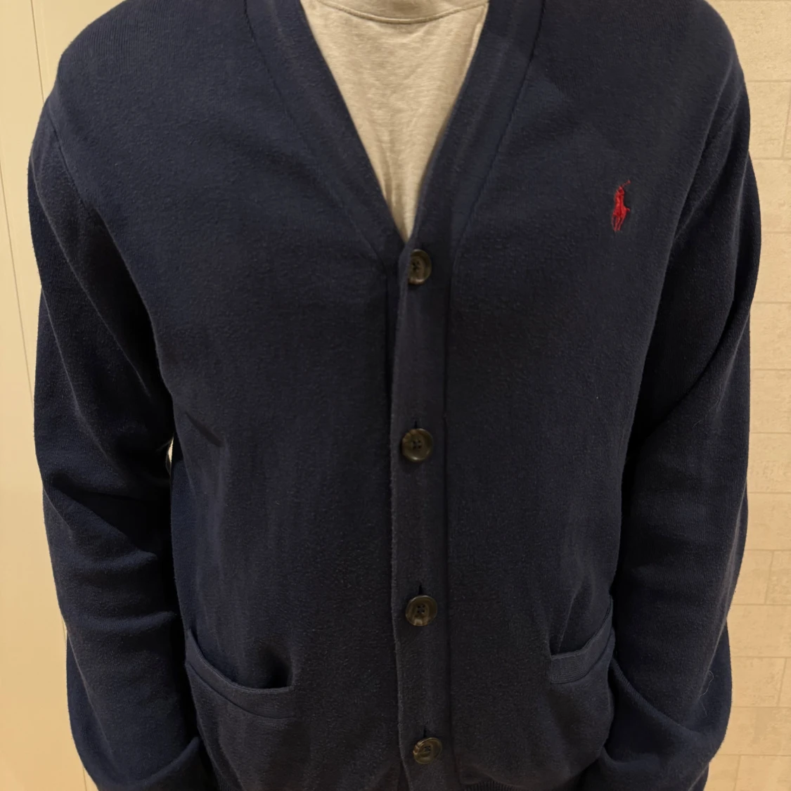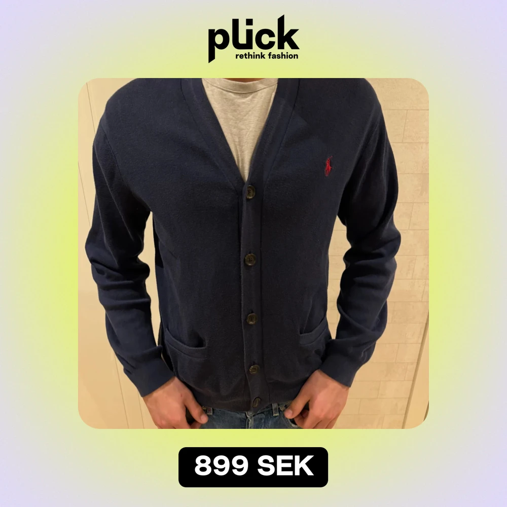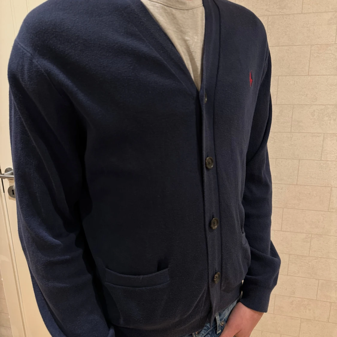 Säljer en snygg mörkblå kofta från Ralph Lauren. Den har en klassisk design med knappar framtill och två praktiska fickor. Perfekt för både höst och vår. Den röda loggan på bröstet ger en stilren touch. Passar bra till både jeans och chinos!