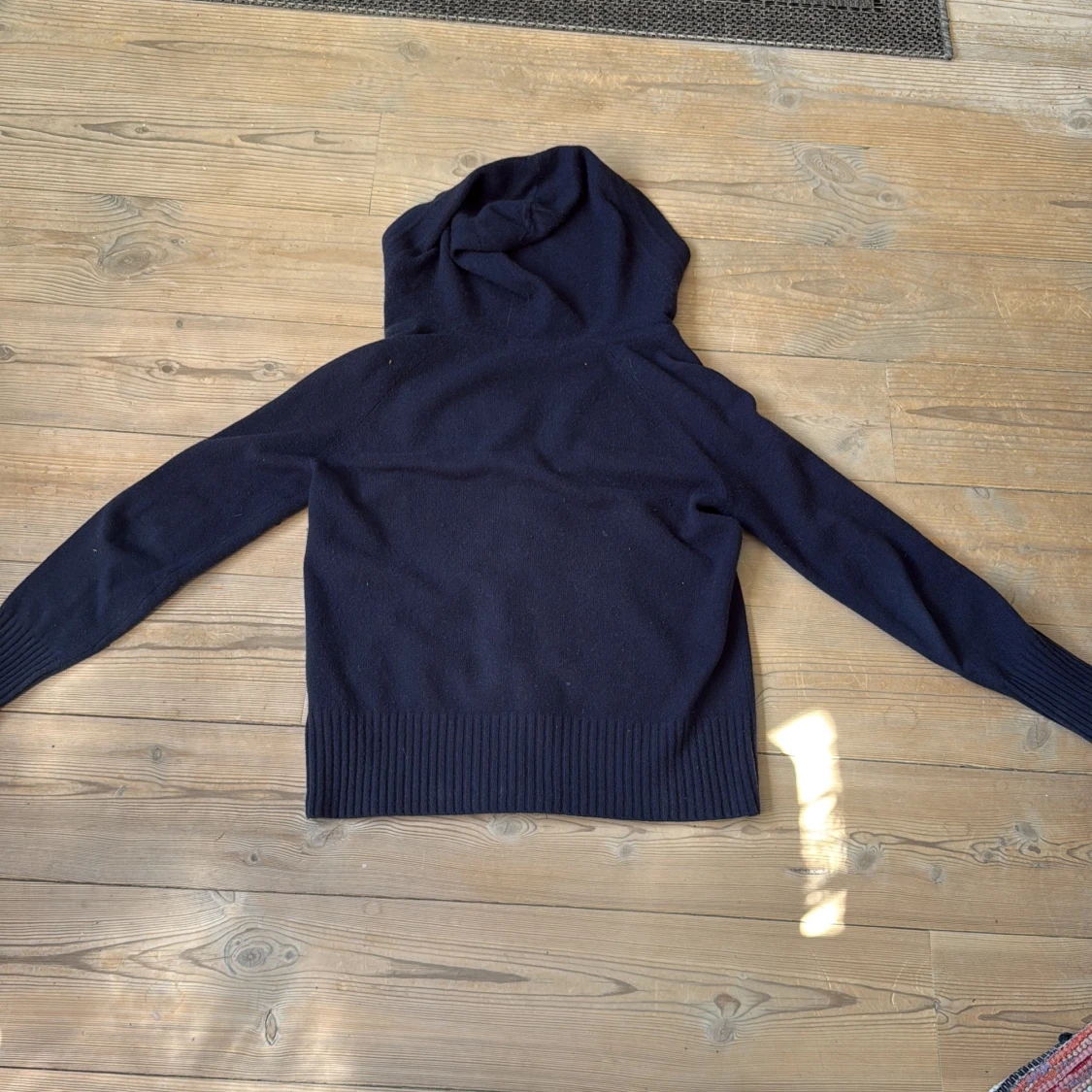 Mörkblå hoddie 100% kashmir och har inte slitits alls. Skick 9/10 nypris 1500 köpt i butik i london.