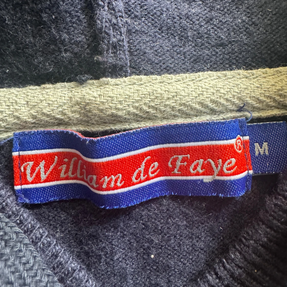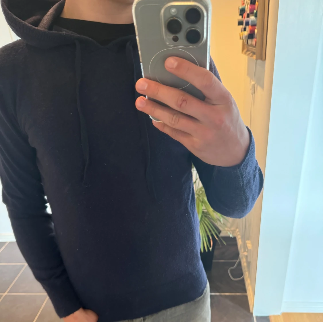 Säljer en stilren mörkblå cashmire hoodie från William de Faye. Tröjan är använd fåtal gånger storlek M men passar S och Xs hör av er för eventulla frågor!!