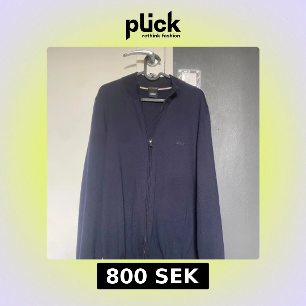 Säljer en stilren mörkblå kofta från Hugo Boss med dragkedja framtill. Koftan har långa ärmar och en enkel design som passar till det mesta. Ett måste i garderoben för den modeintresserade! Jag säljer den då jag inte använder den och heller inte har använt den jätte mycket.