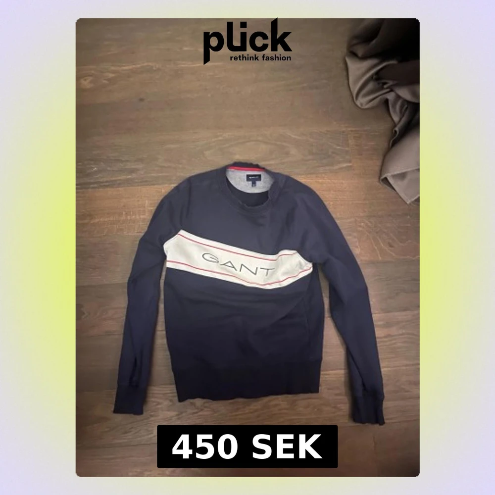 Snygg mörkblå tröja från GANT i storlek S. Tröjan har en vit panel med röd kant och stor GANT-logga över bröstet. Rund hals och långa ärmar med ribbade muddar. Perfekt för dig som gillar klassisk och sportig stil.