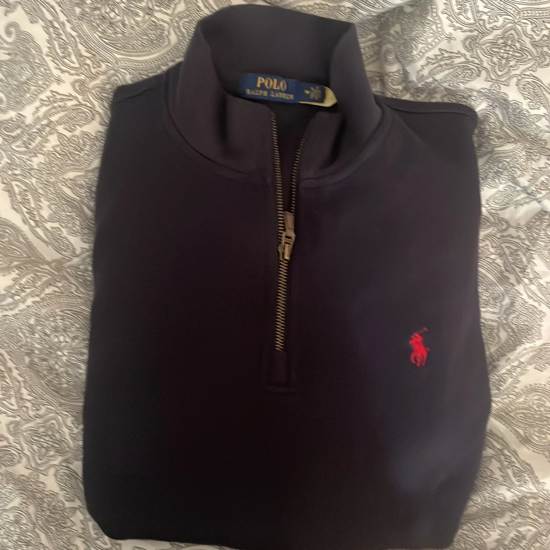 Mörkblå långärmad tröja från Polo Ralph Lauren med klassisk röd broderad logga på bröstet. Tröjan har en snygg half zip-dragkedja och stårkrage. Perfekt för lager-på-lager och chill stil. Pris går mycket väl att diskuteras!