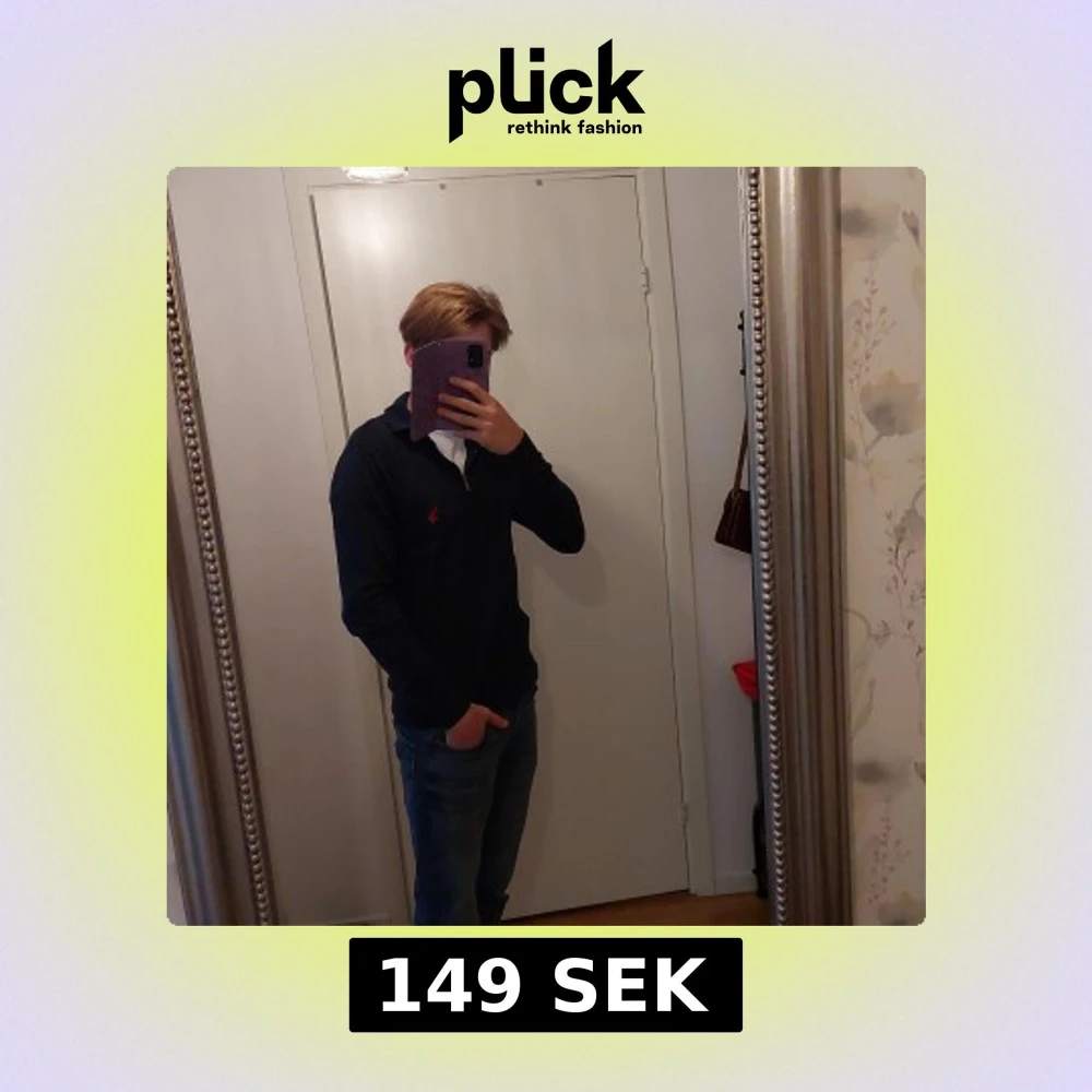 Säljer en mörkblå långärmad half zip-tröja från U.S. Polo Assn. med röd logga broderad på bröstet. Tröjan har klassisk krage och är i mjukt material, perfekt för lager-på-lager. Passar dig som gillar stilren och sportig look.