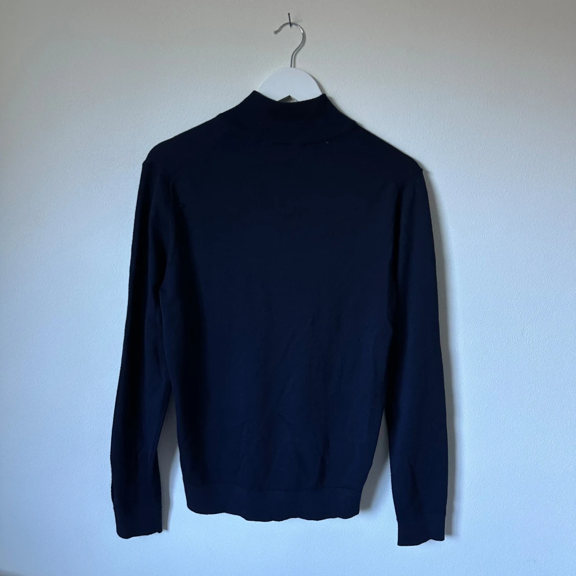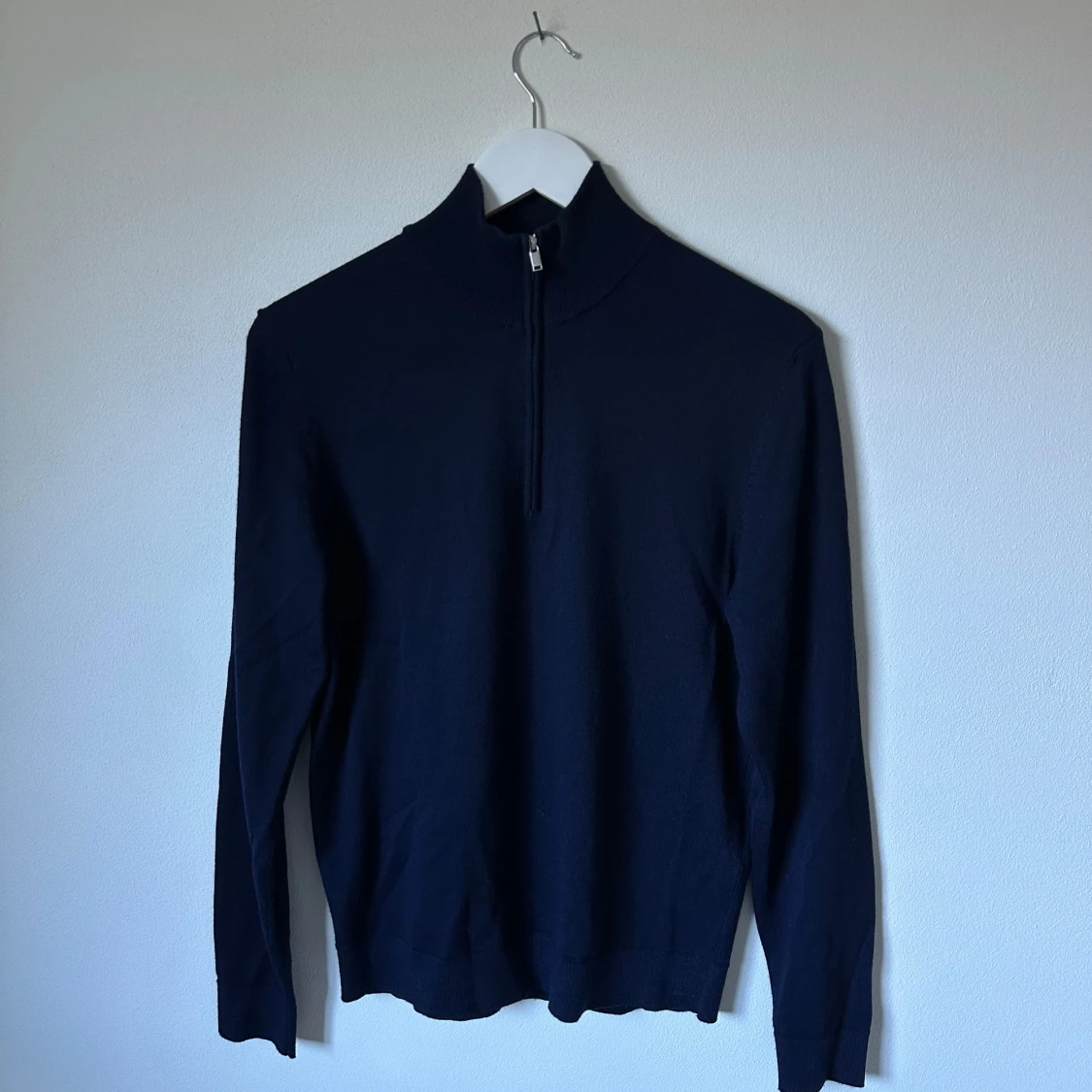 Mörkblå långärmad tröja från Selected Homme med half zip-dragkedja i halsen. Tröjan har en stilren och enkel design med ribbade muddar och hög krage. Perfekt för lager-på-lager och passar till många olika outfits. 3Y17