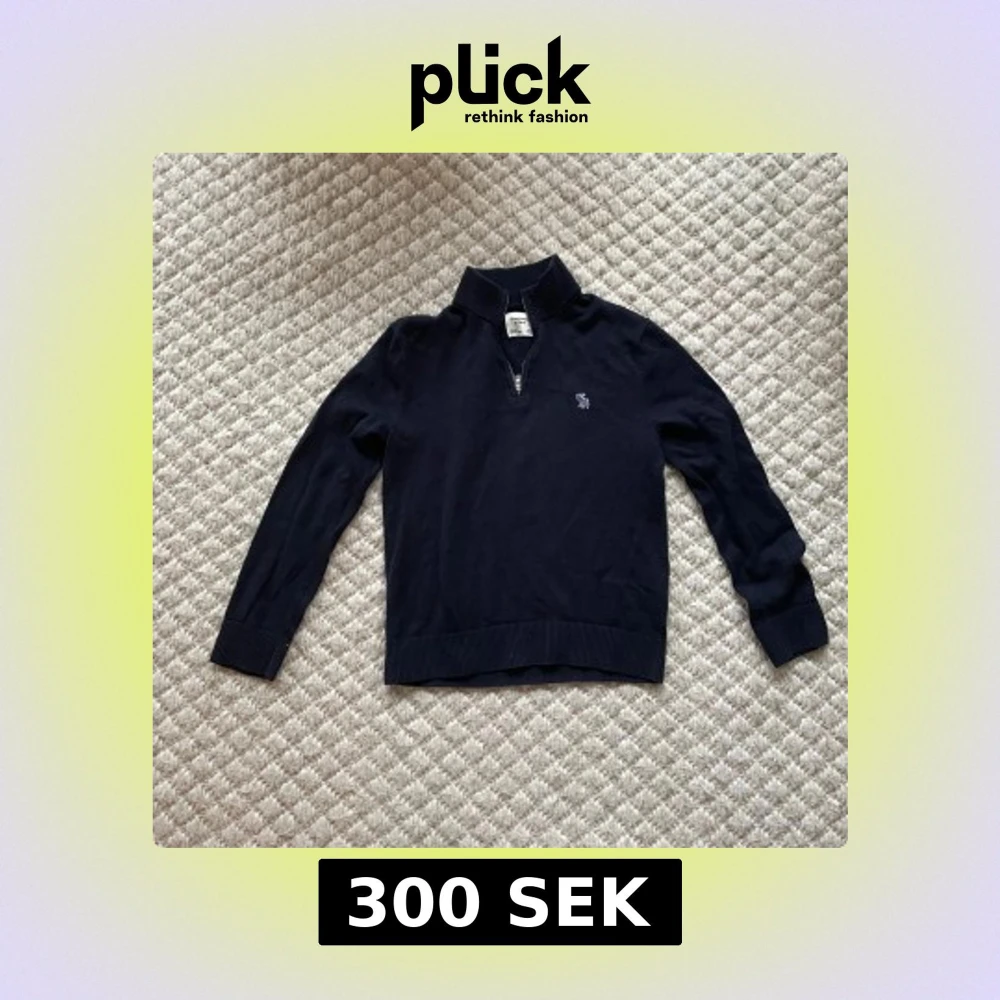 Snygg mörkblå halfzip tröja. Perfekt för kyligare dagar. Den har långa ärmar och en liten broderad logga på bröstet. Ribbstickade muddar vid ärmslut och nederkant ger en stilren look.