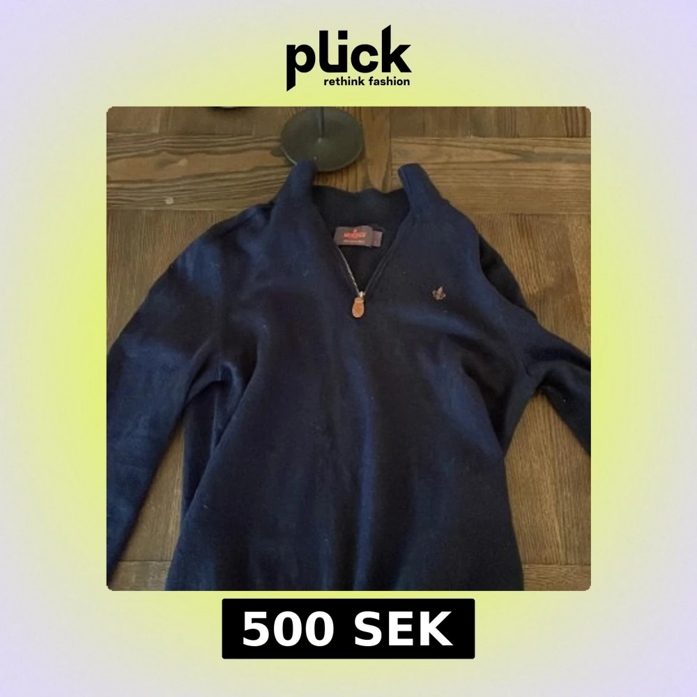 Säljer en stilren mörkblå tröja från Morris i 100% merinoull. Tröjan har en praktisk dragkedja framtill och en liten broderad logga på bröstet. Perfekt för kyligare dagar. Obs tröjan är lite liten i storleken