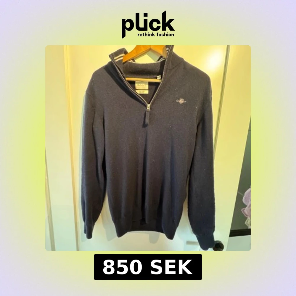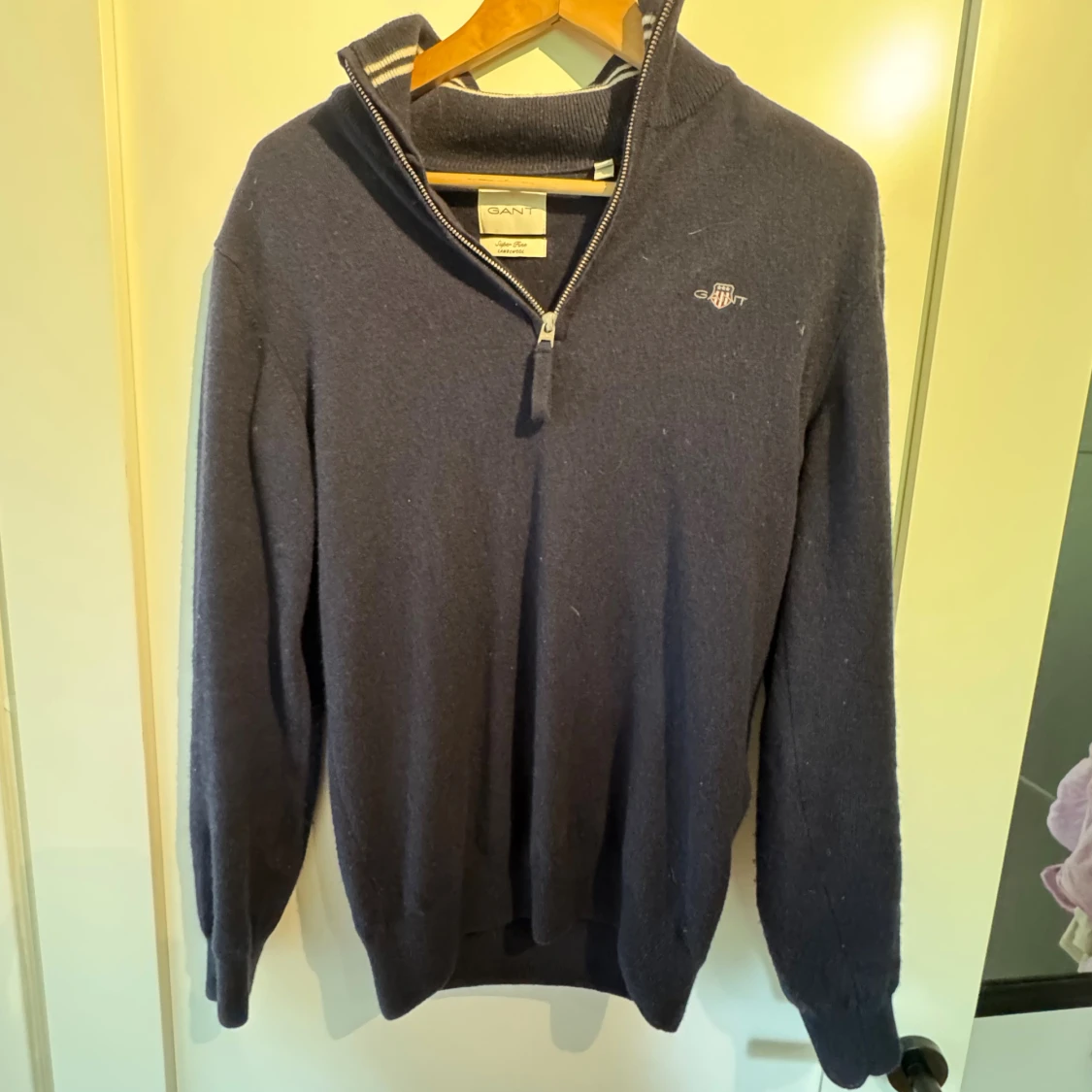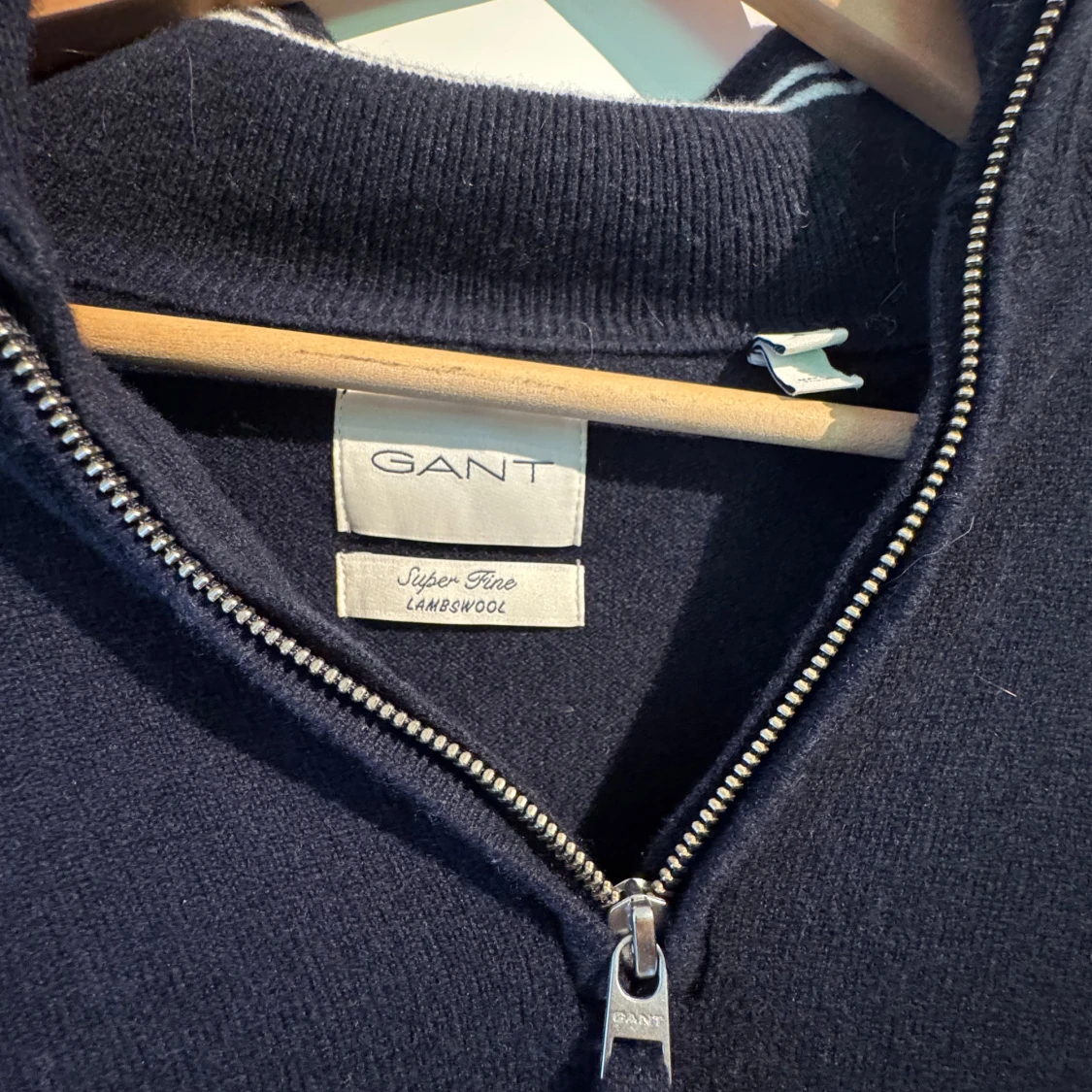 Snygg mörkblå tröja från GANT i superfin lammull. Halvzip med ribbad krage och broderad logga på bröstet. Långärmad och perfekt för kyliga dagar.