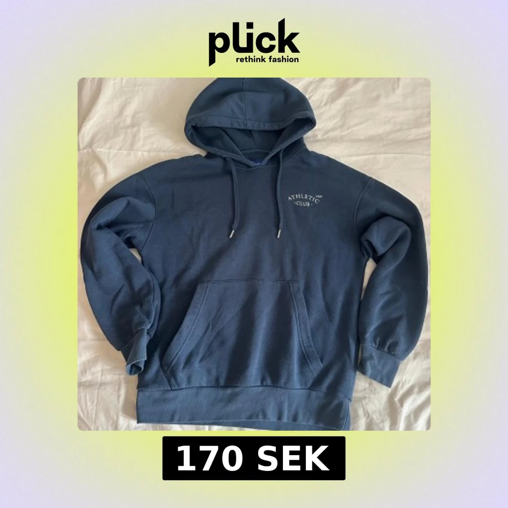 Mörkblå hoodie från Athletic Club med broderad vit text på bröstet. Klassisk känguruficka, huva med snörning och mjuk fleece på insidan. Perfekt för dig som gillar en enkel och stilren look. Pris diskuteras vid snabb affär! 💕💕