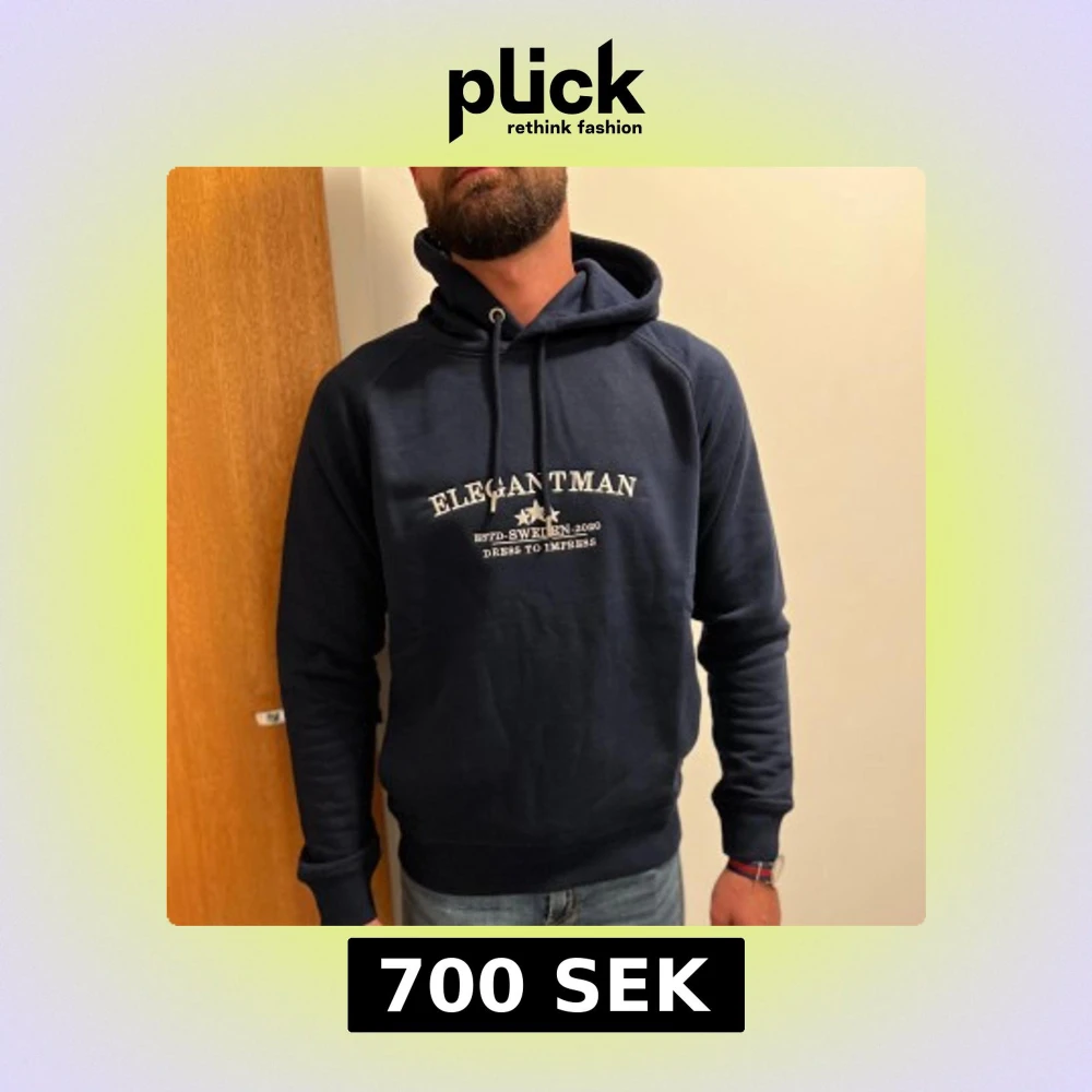 Mörkblå hoodie från Elegantman. Helt ny med lappar Super snygg modell sidfickor Jag har storlek xs- s-m - L 100% ekobomull Fleece insidan