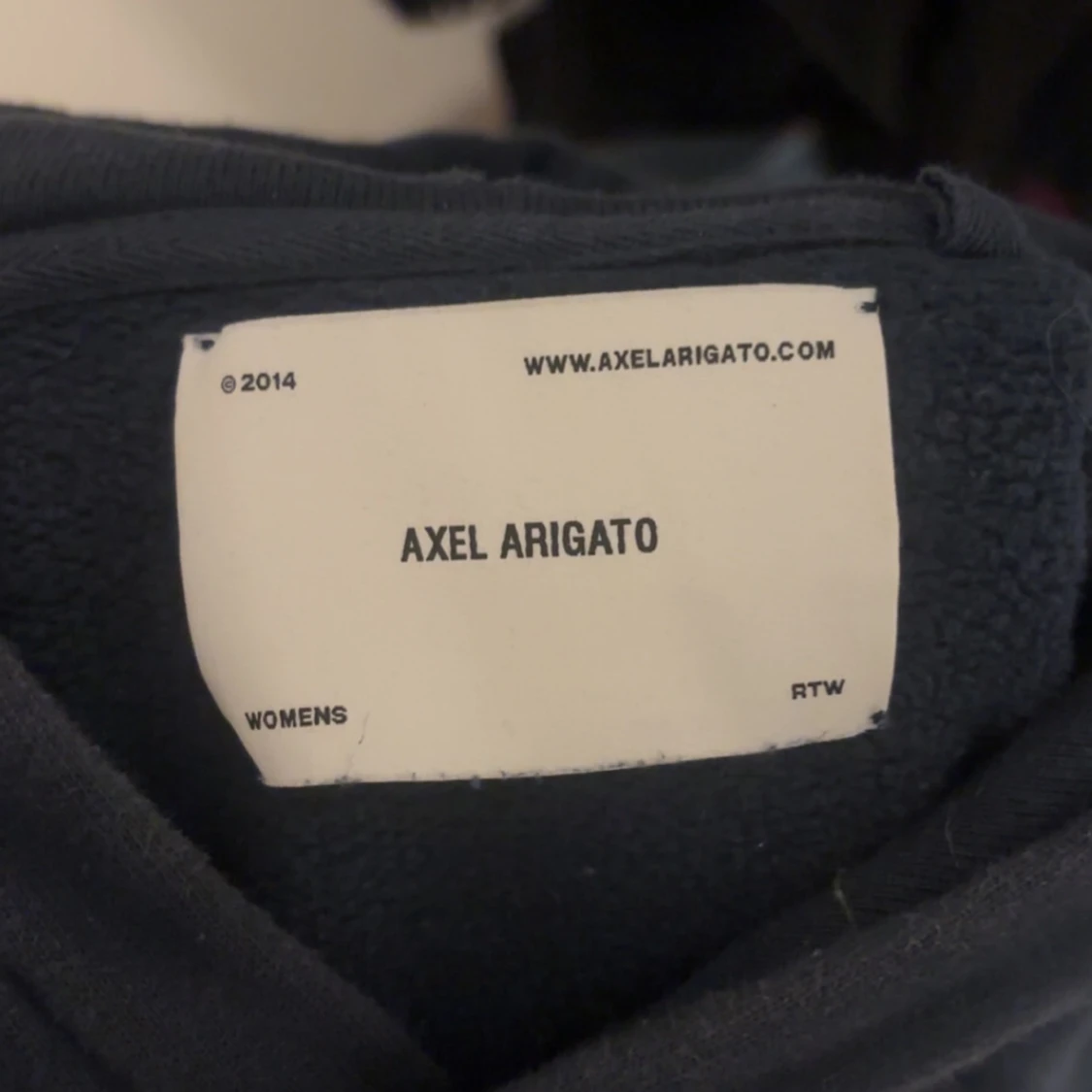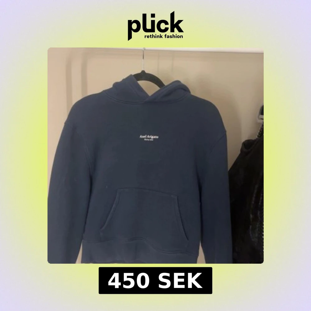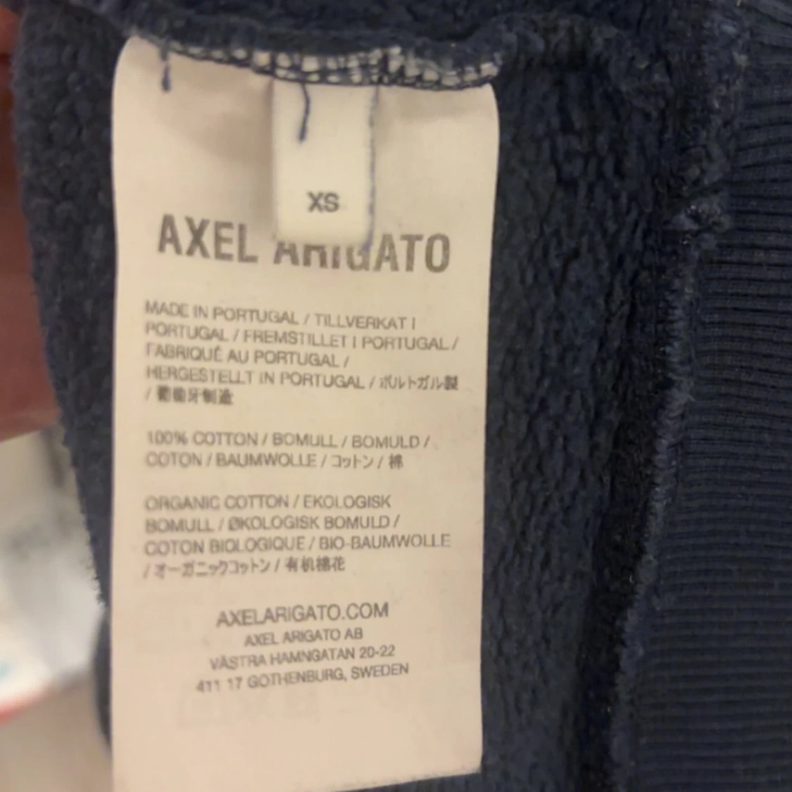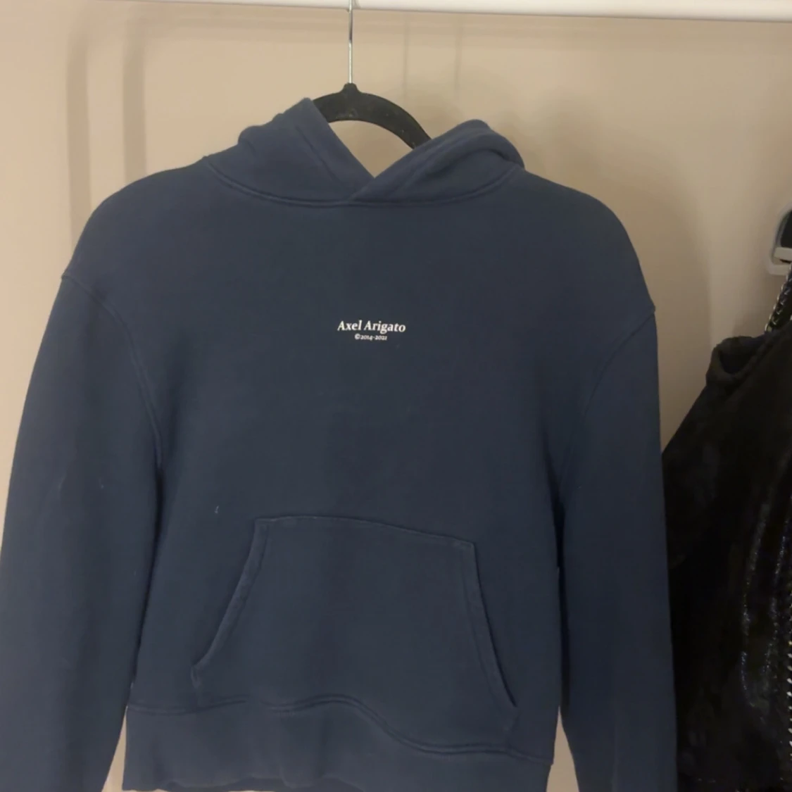 Snygg mörkblå hoodie från Axel Arigato, klassisk modell med huva, magficka och en mindre vit logga