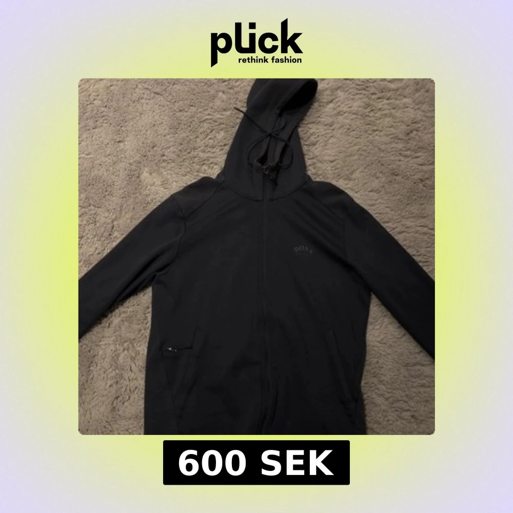 Mörkblå hoodie från BOSS med hel dragkedja och huva med snörning. Tröjan har två fickor framtill och diskret BOSS-logga på bröstet. Materialet är mjukt och känns skönt mot huden, perfekt för chill eller när du vill ha en clean look.