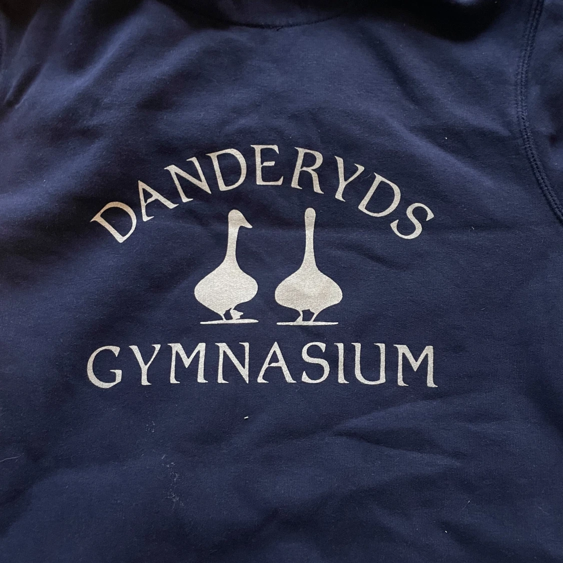 Säljer en mörkblå hoodie från Danderyds Gymnasium. Den är supermjuk och perfekt för kalla dagar. Har en stor ficka fram och en justerbar huva. Perfekt för att chilla eller plugga i. 🦆