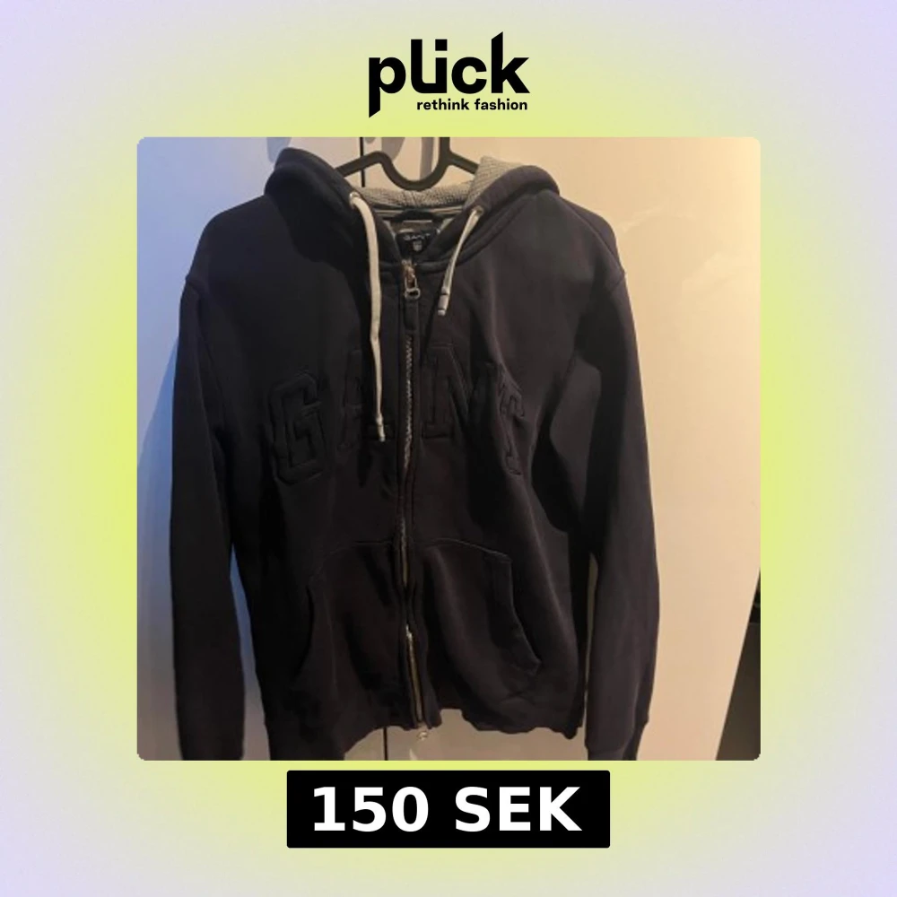 Säljer en snygg mörkblå hoodie från GANT med dragkedja och justerbar huva. Tröjan har ett broderat GANT-märke på framsidan och praktiska fickor. Perfekt för en avslappnad stil.