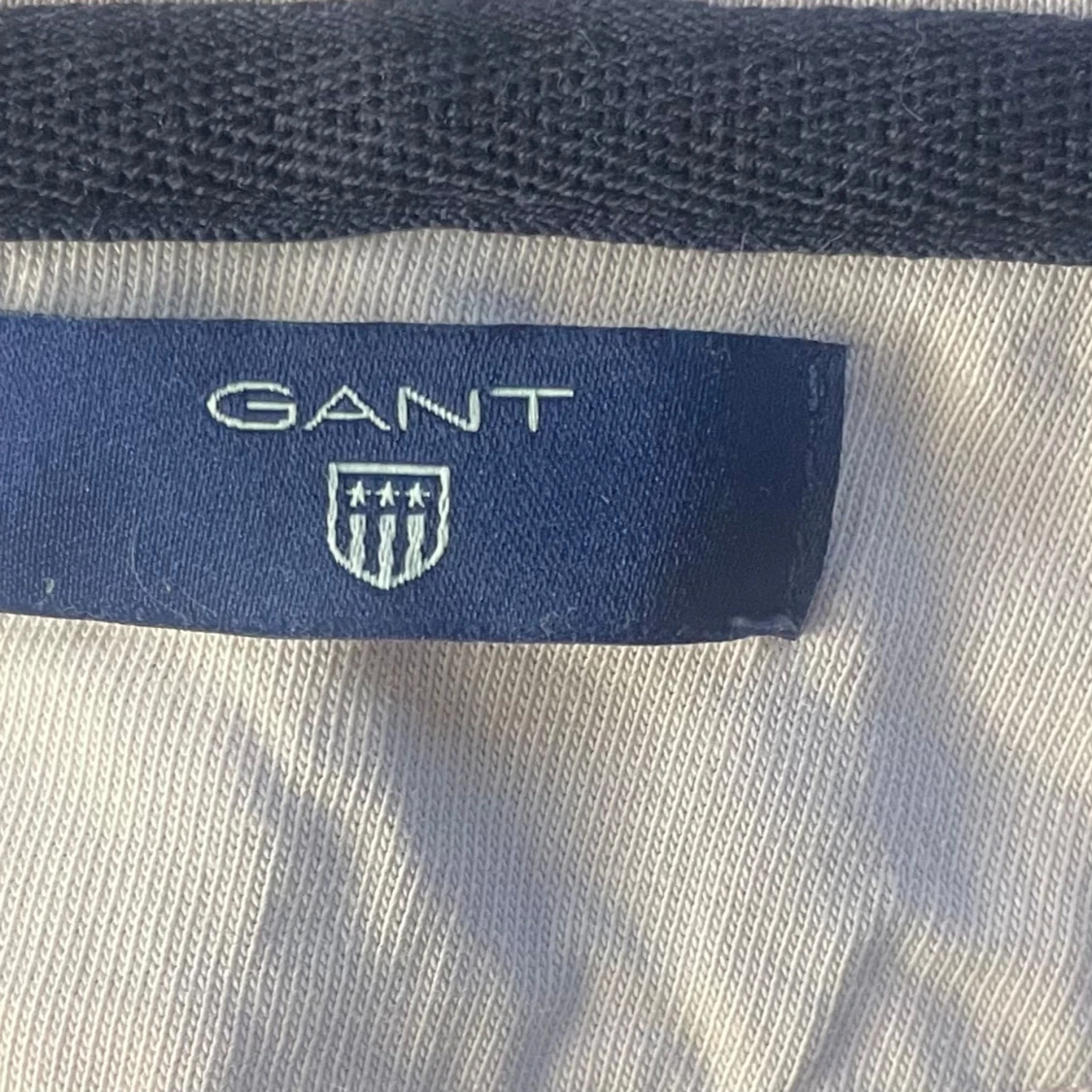 Säljer en snygg mörkblå hoodie från GANT med dragkedja och logga framtill. Den har långa ärmar och en bekväm passform.