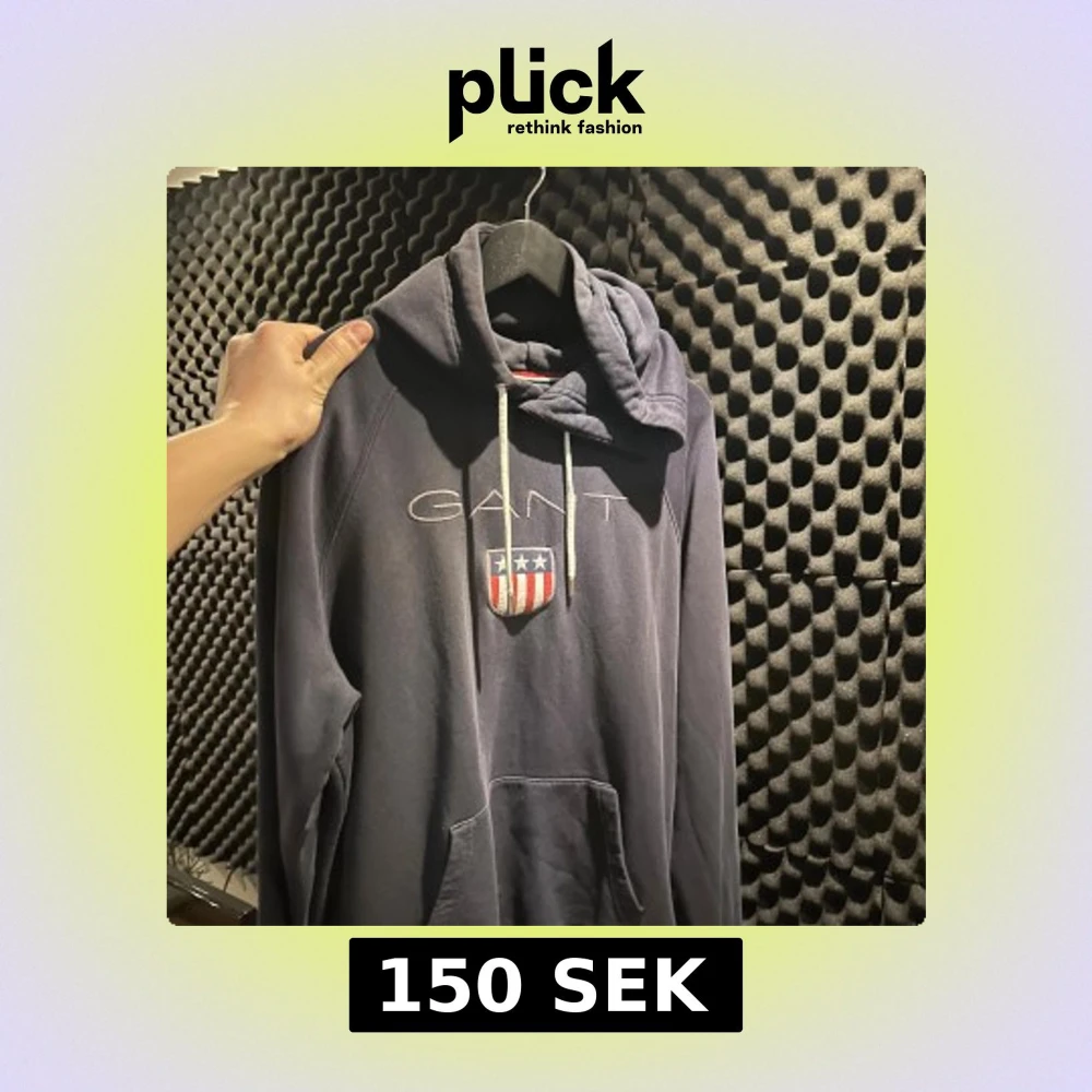 Mörkblå hoodie från GANT i storlek L med klassiskt broderat logotyptryck och amerikanskinspirerat emblem på bröstet. Tröjan har huva med snörning, känguruficka och mjukt bomullsmaterial. Perfekt för dig som gillar stilren streetwear.