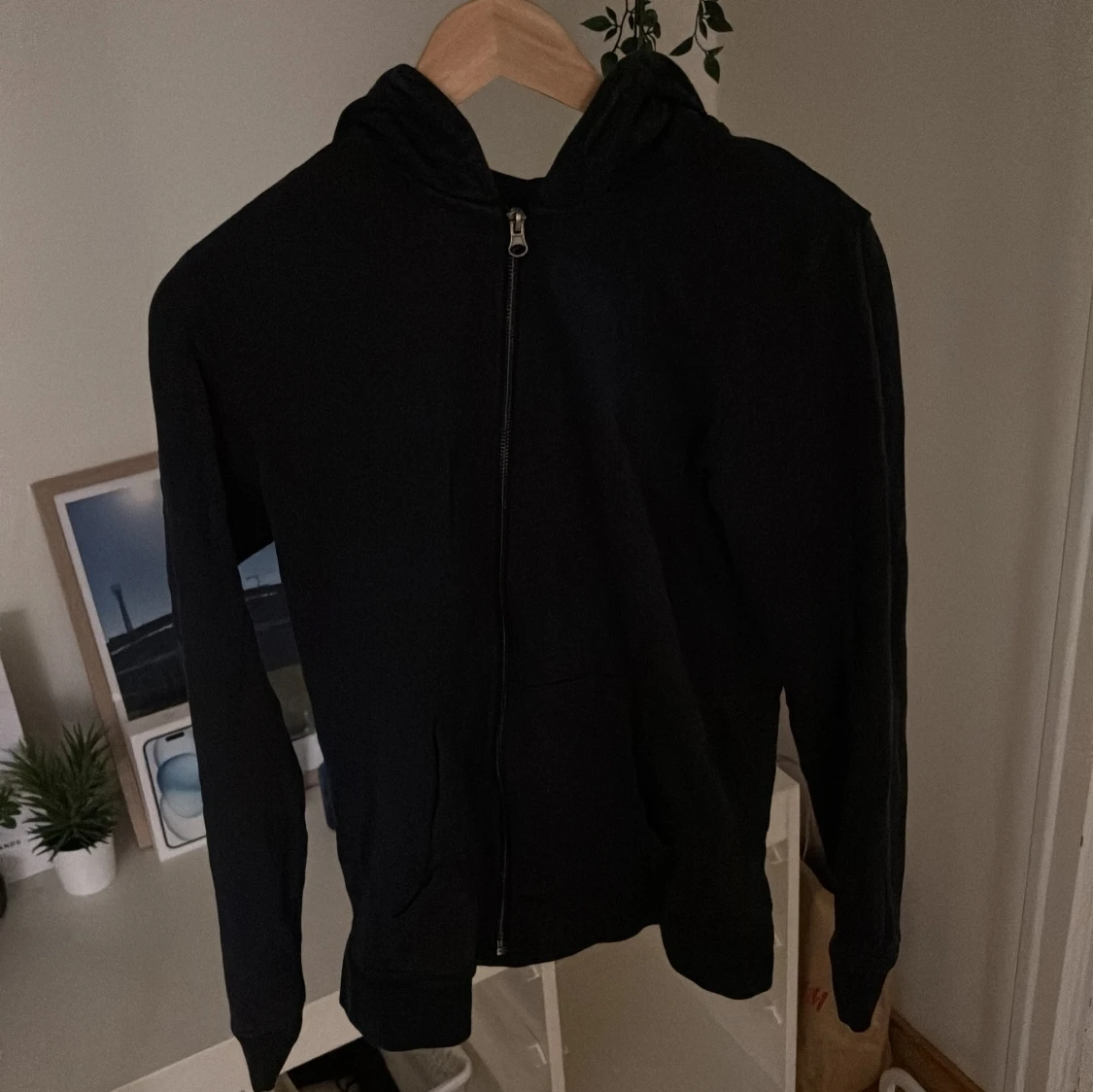 Svart hoodie från Jack & Jones med dragkedja framtill och huva. Tröjan har långa ärmar, ribbade muddar och två fickor framtill. Perfekt för chill dagar eller när du vill ha en enkel och stilren look.