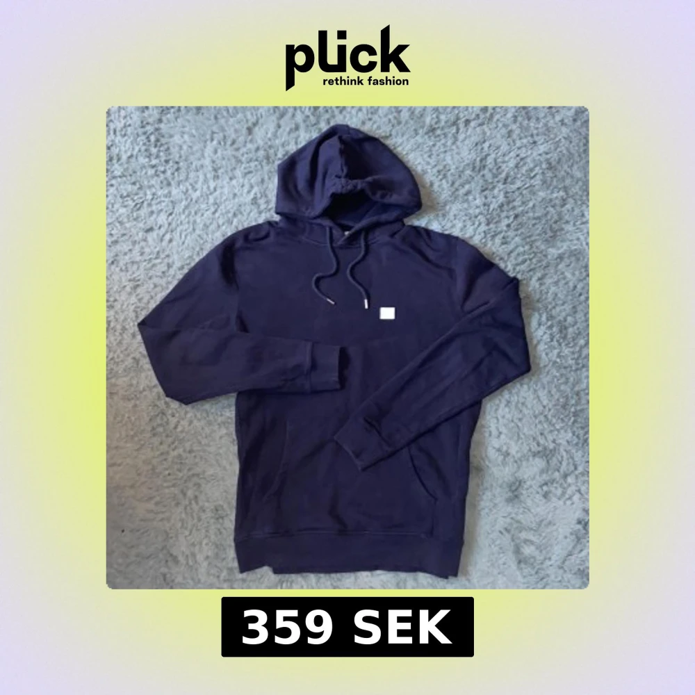 Säljer en stilren mörkblå hoodie från Les Deux med liten broderad logotyp på bröstet. Storlek XL men passa som L. Tröjan har huva med dragsko och långa ärmar. Perfekt för en avslappnad och snygg look.