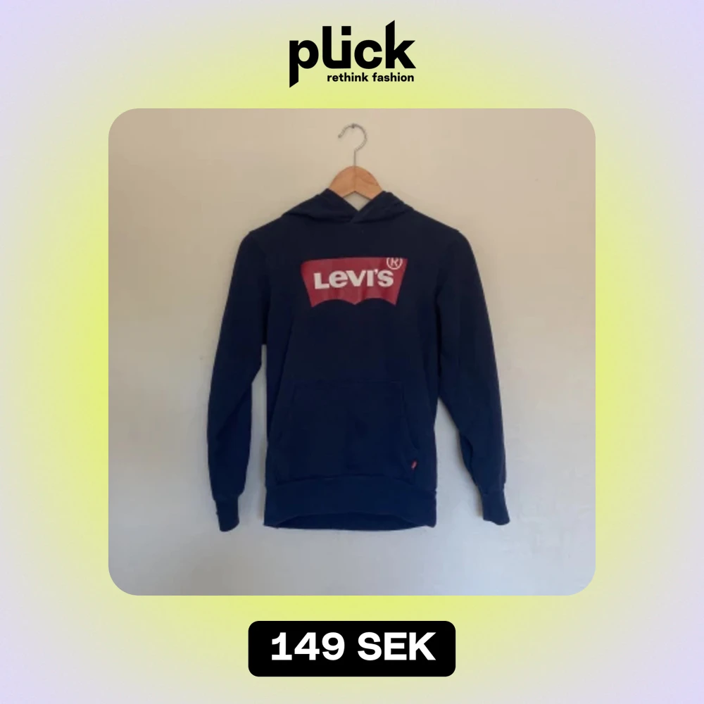 Säljer en snygg mörkblå hoodie från Levi's med deras ikoniska logga i rött och vitt på bröstet. Den är i bra skick och perfekt för både höst och vinter. Hoodien har en klassisk passform med en stor ficka fram och långa ärmar. Perfekt för en casual look!