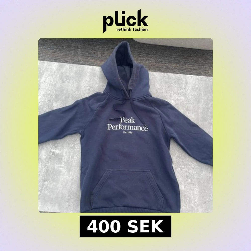 Passar XS VÄLDIGT BRA 👍. Säljer en mörkblå hoodie från Peak Performance med vit logga på bröstet. Tröjan har huva med snörning och en stor magficka. Perfekt för dig som gillar en sportig och avslappnad stil.