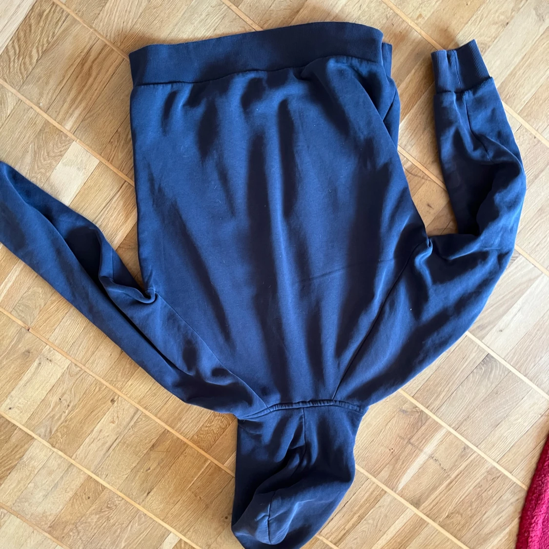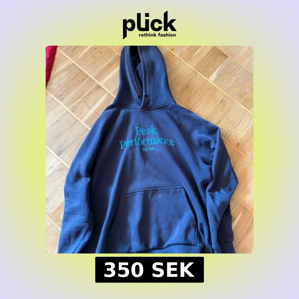 Säljer en mörkblå hoodie från Peak Performance med broderad logga i turkos framtill. Klassisk känguruficka och huva med dragsko. Perfekt för en avslappnad stil.