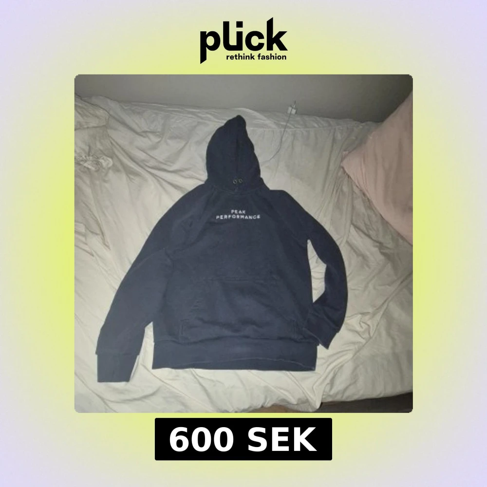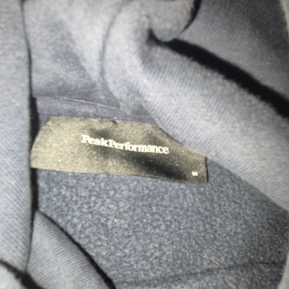 Säljer en mörkblå hoodie från Peak använd ett par gånger Performance med vit logga på bröstet. Klassisk modell med huva, känguruficka och ribbade muddar. Perfekt för chill dagar eller när du vill ha en enkel och snygg look.