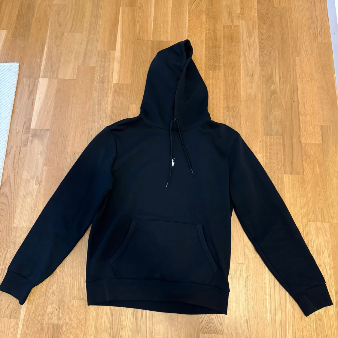 Mörkblå hoodie från Polo Ralph Lauren med klassisk huva och snörning. Tröjan har en enkel design med fickor framtill och långa ärmar. Perfekt för chill dagar och enkel att matcha med jeans eller joggers. Materialet är mjukt och känns skönt mot huden.